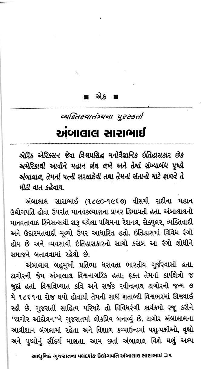 આધુનિક ગુજરાતના પથદર્શક ઉદ્યોગપતિ અંબાલાલ સારાભાઈ — મકરન્દ મહેતા