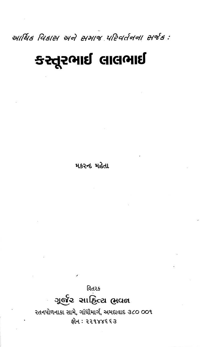 આર્થિક વિકાસ અને સમાજ પરિવર્તનના સર્જક : કસ્તૂરભાઈ લાલભાઈ — મકરન્દ મહેતા
