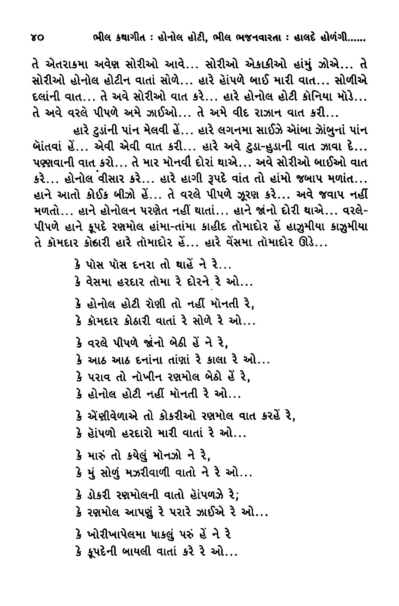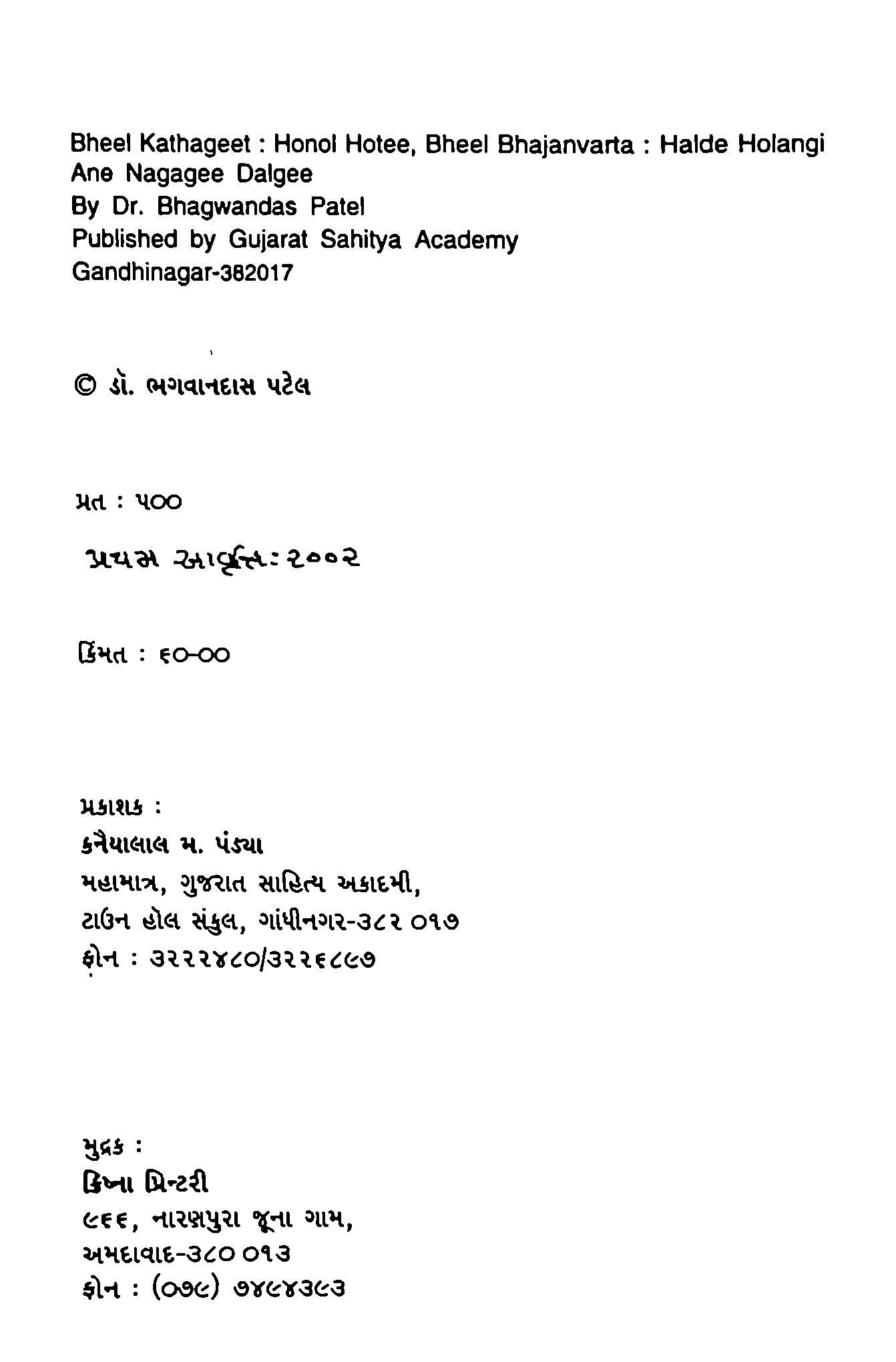 ભીલ કથાગીત : હોનોલ હોટી, ભીલ ભજનવારતા : હાલદે હોળંગી અને નાગઝી-દલજી - ભગવાનદાસ પટેલ