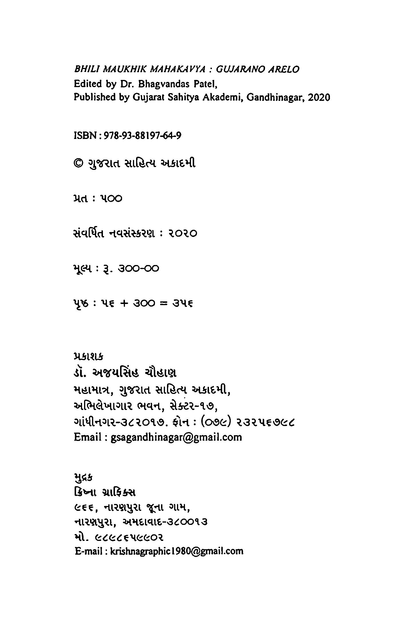 ભીલી મૌખિક મહાકાવ્ય - ગુજરાંનો અરેલો - ભગવાનદાસ પટેલ