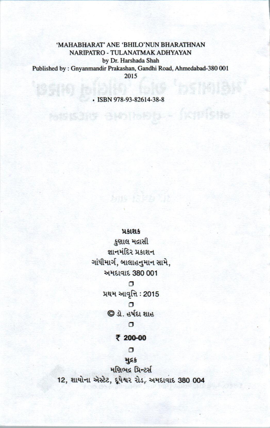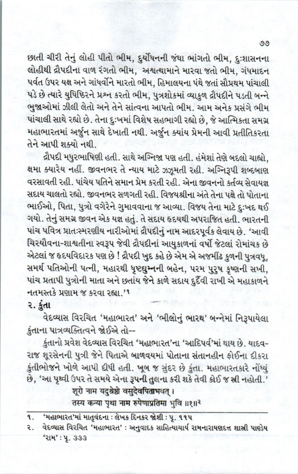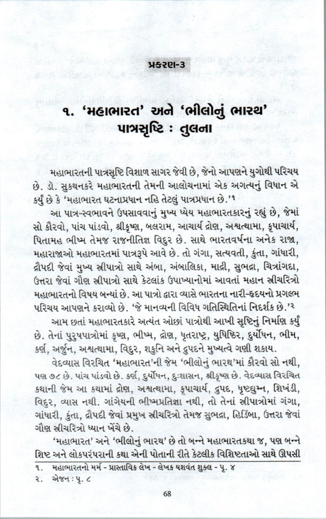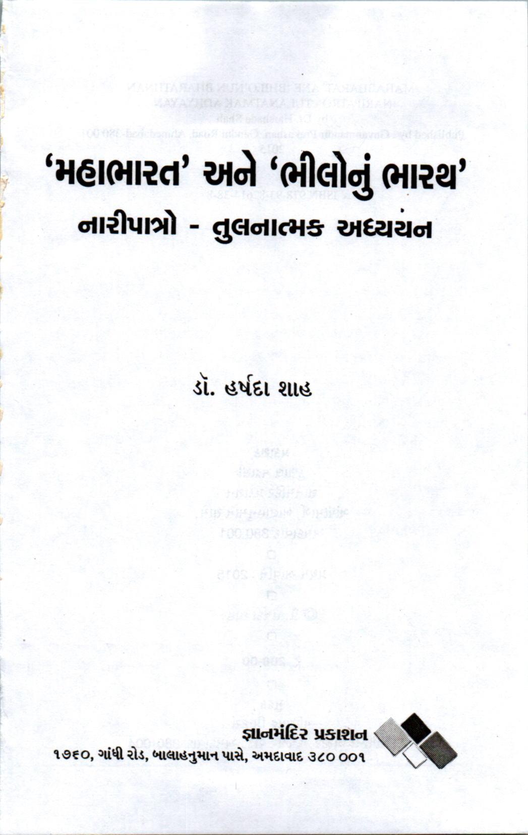 'મહાભારત' અને 'ભીલોનું ભારથ' નારીપાત્રો-તુલનાત્મક અભ્યાસ - હર્ષદા શાહ