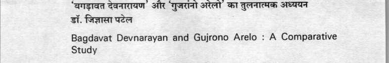 बगडावत देवनारायण और 'गुजरांनोअरेलो' का तुलनात्मक अध्ययन - जिज्ञासा पटेल
