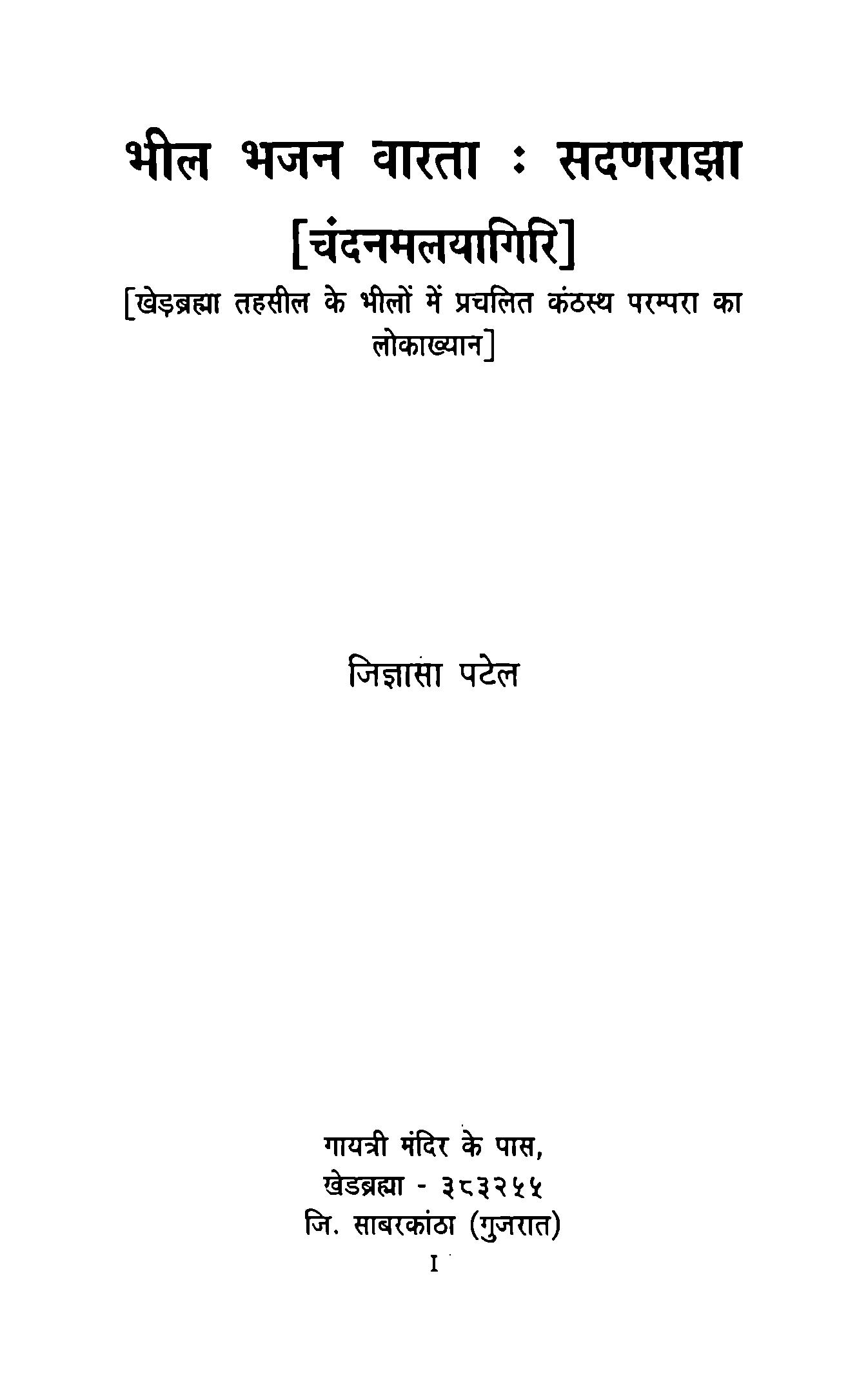 भील भजन वारताः सदणराझा (चंदनमलयागिरि) - जिज्ञासा पटेल