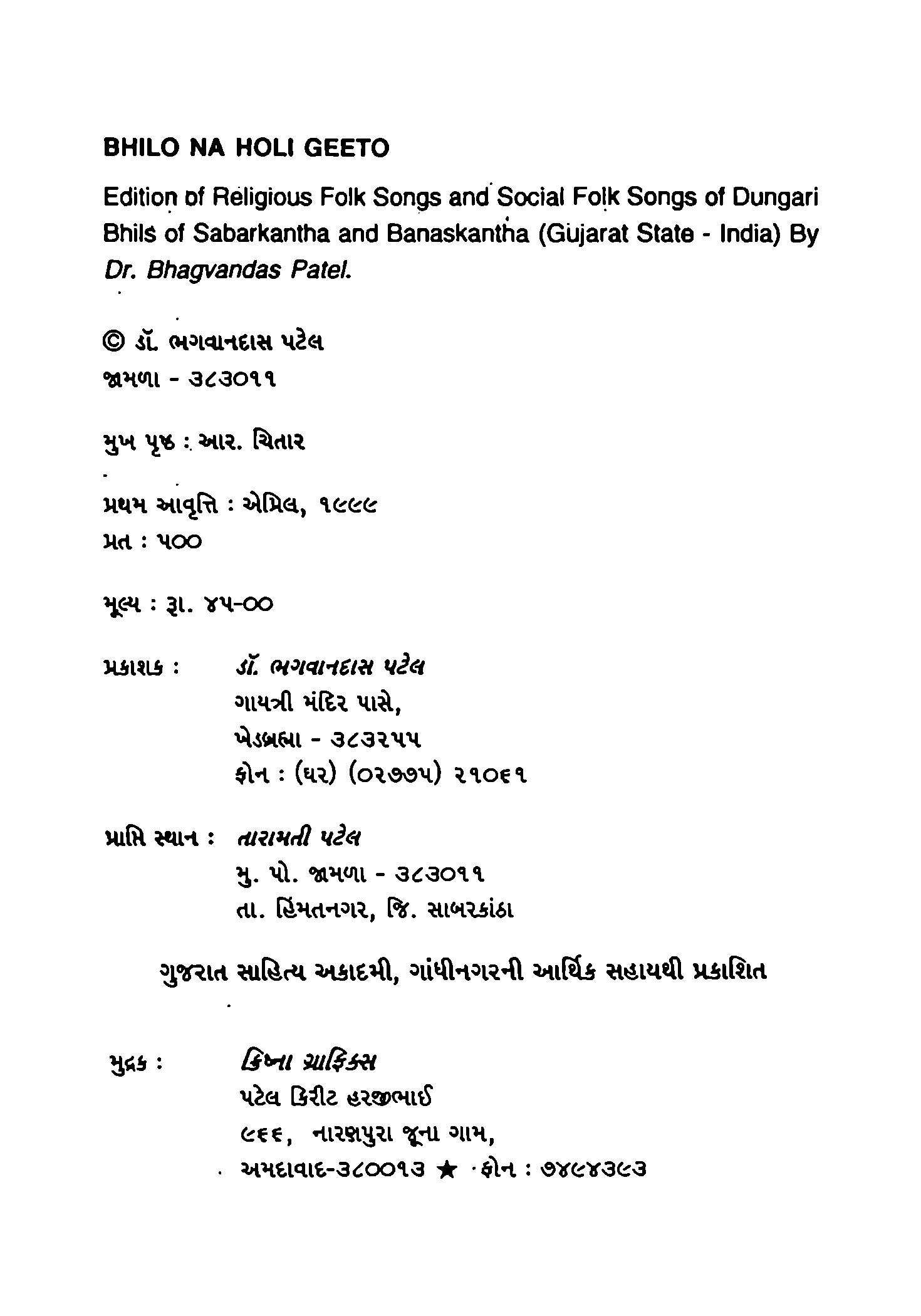 ભીલોનાં હોળીગીતો - ભગવાનદાસ પટેલ by Ekatra Foundation - Issuu