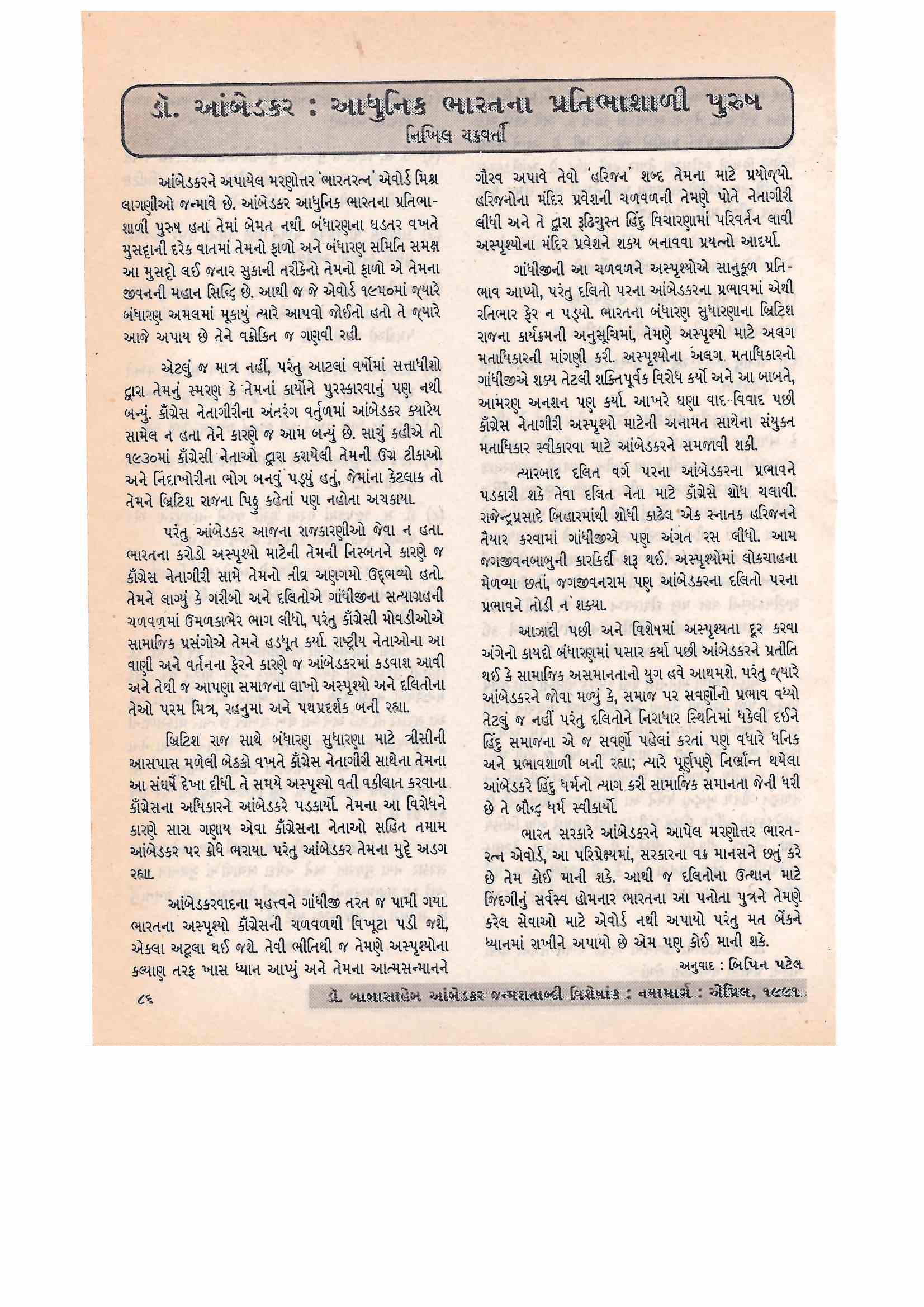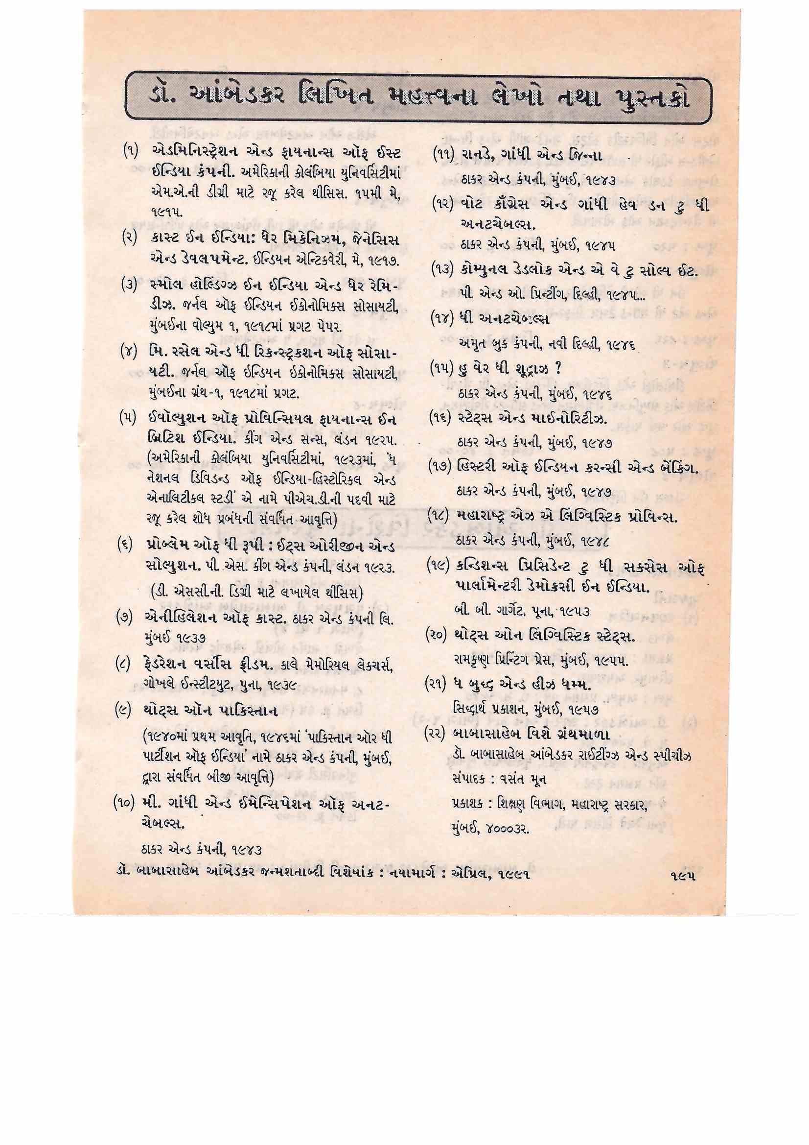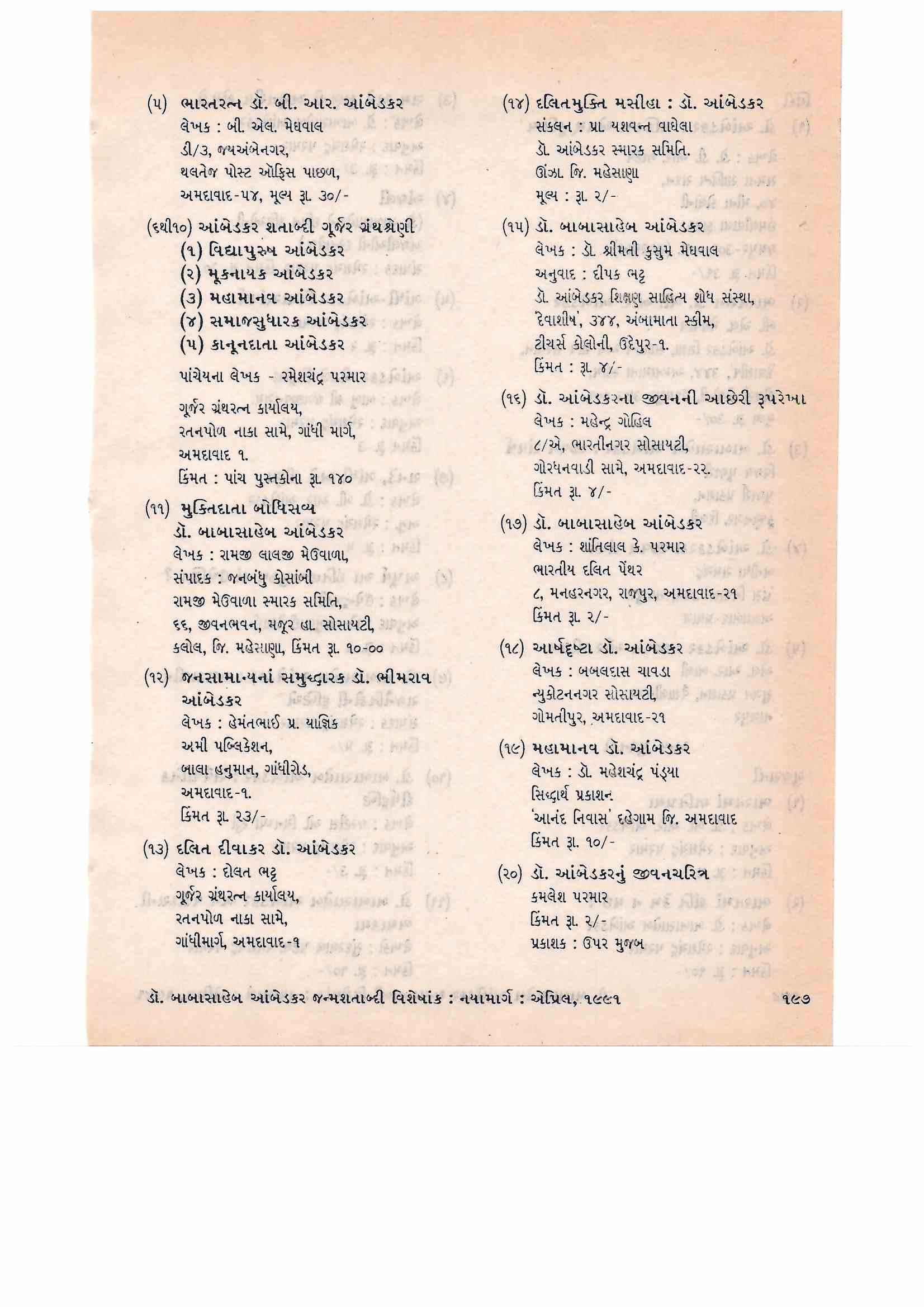 Year 14 April 1991 Dr. Babasaheb Ambedkar Janmshatabdi Visheshank Naya Marg