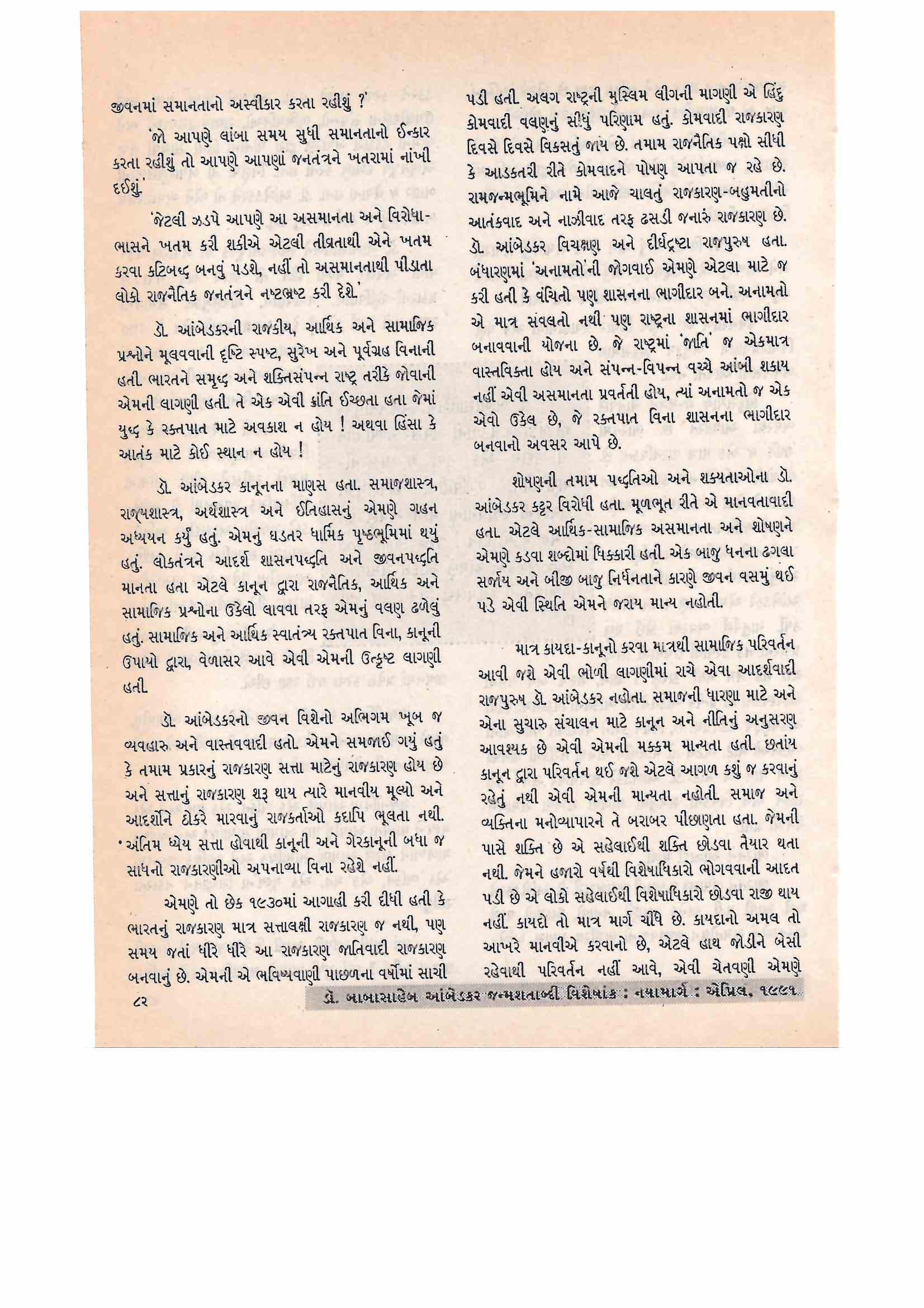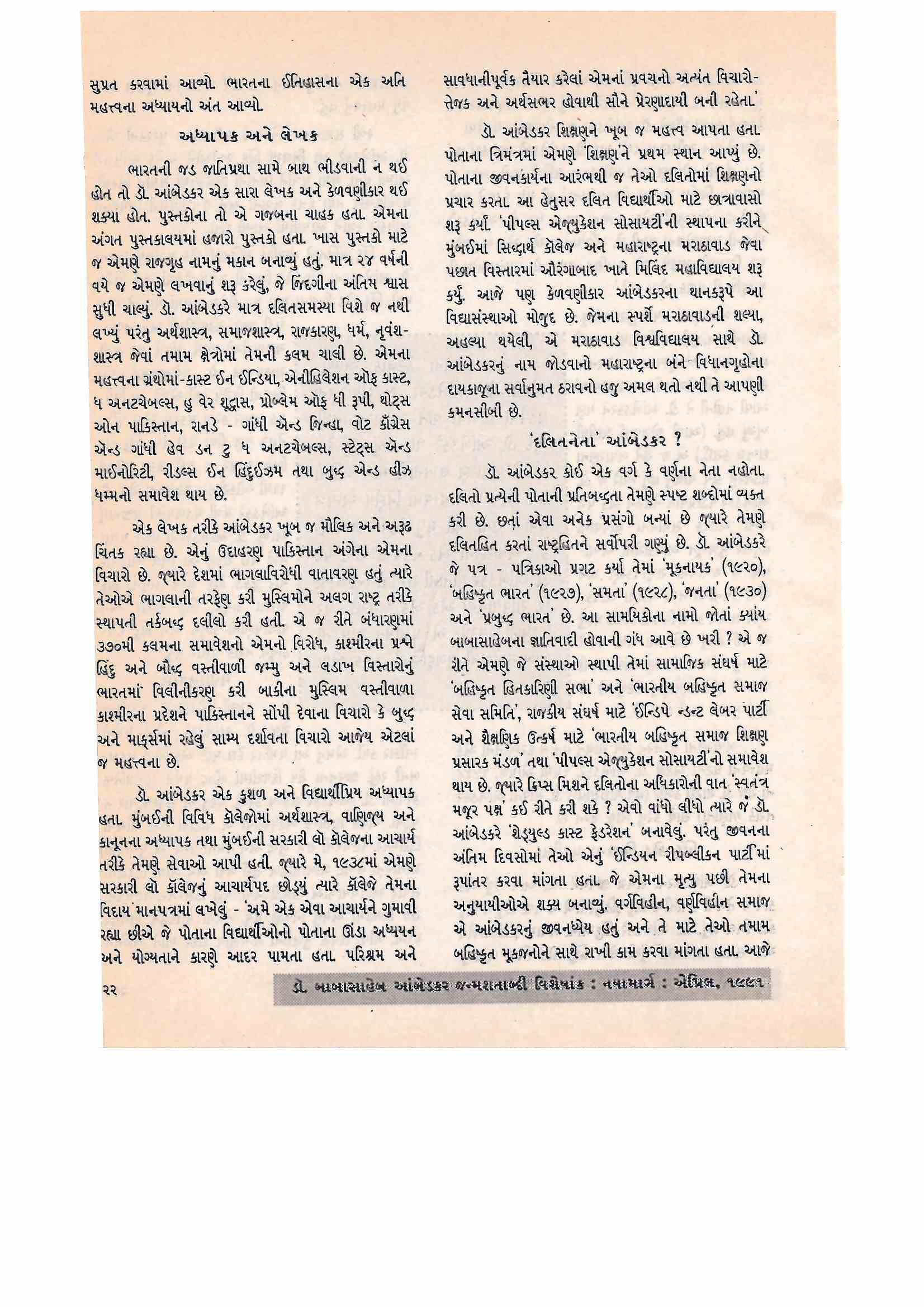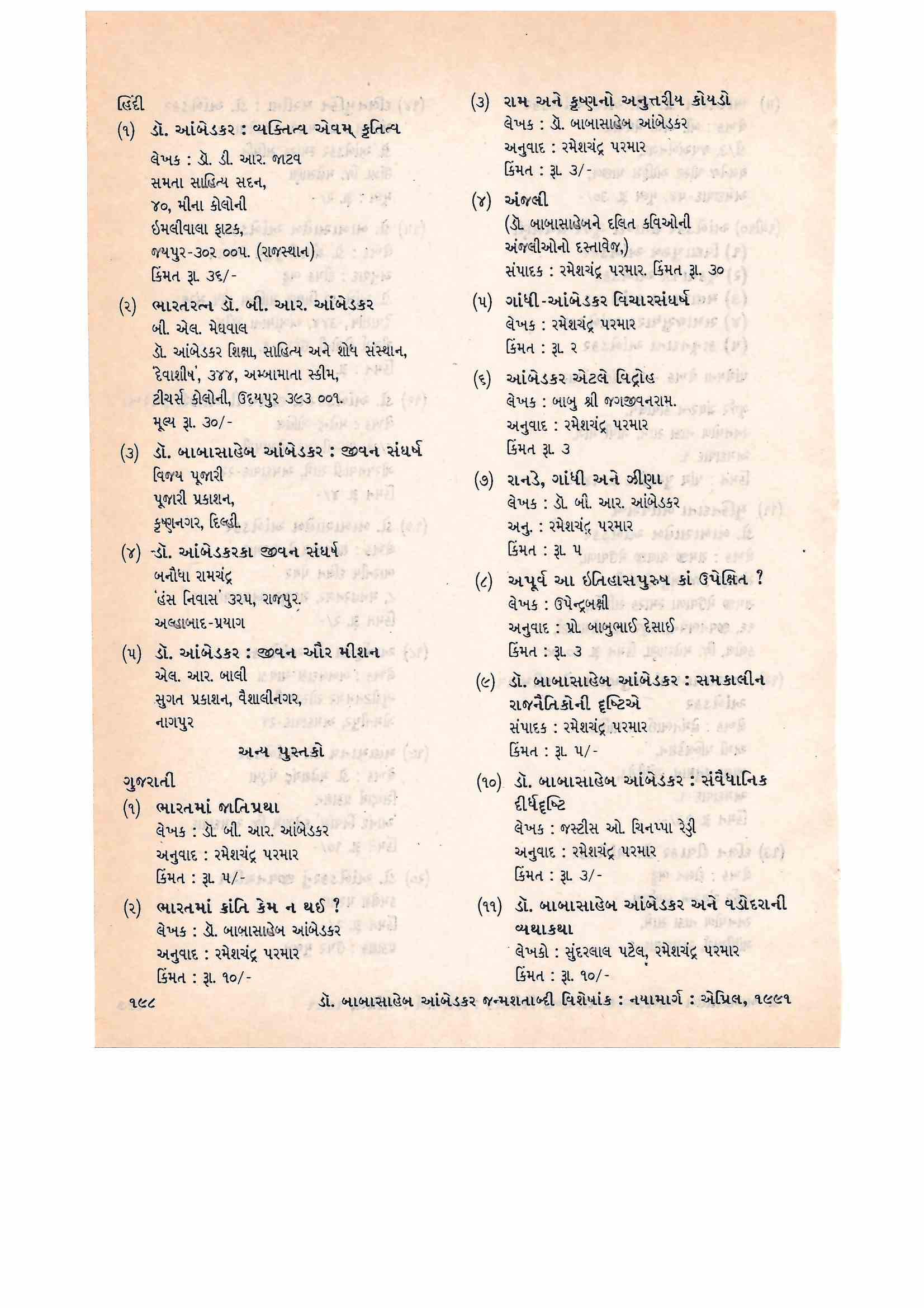 Year 14 April 1991 Dr. Babasaheb Ambedkar Janmshatabdi Visheshank Naya Marg
