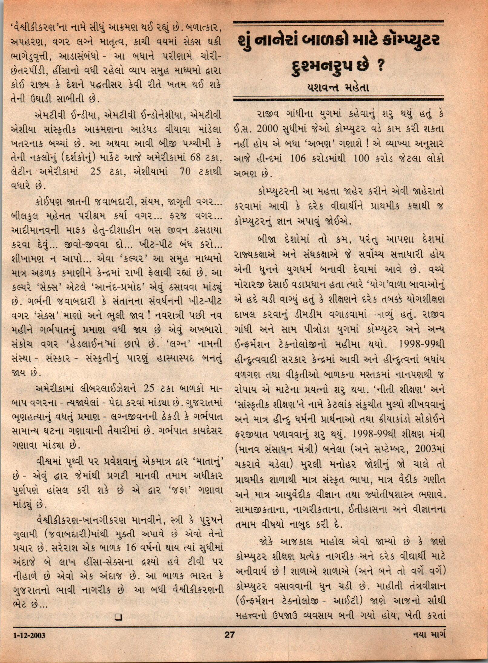 Year 26 1st Dec 2003 Issu 23 Naya Marg by Ekatra Foundation - Issuu