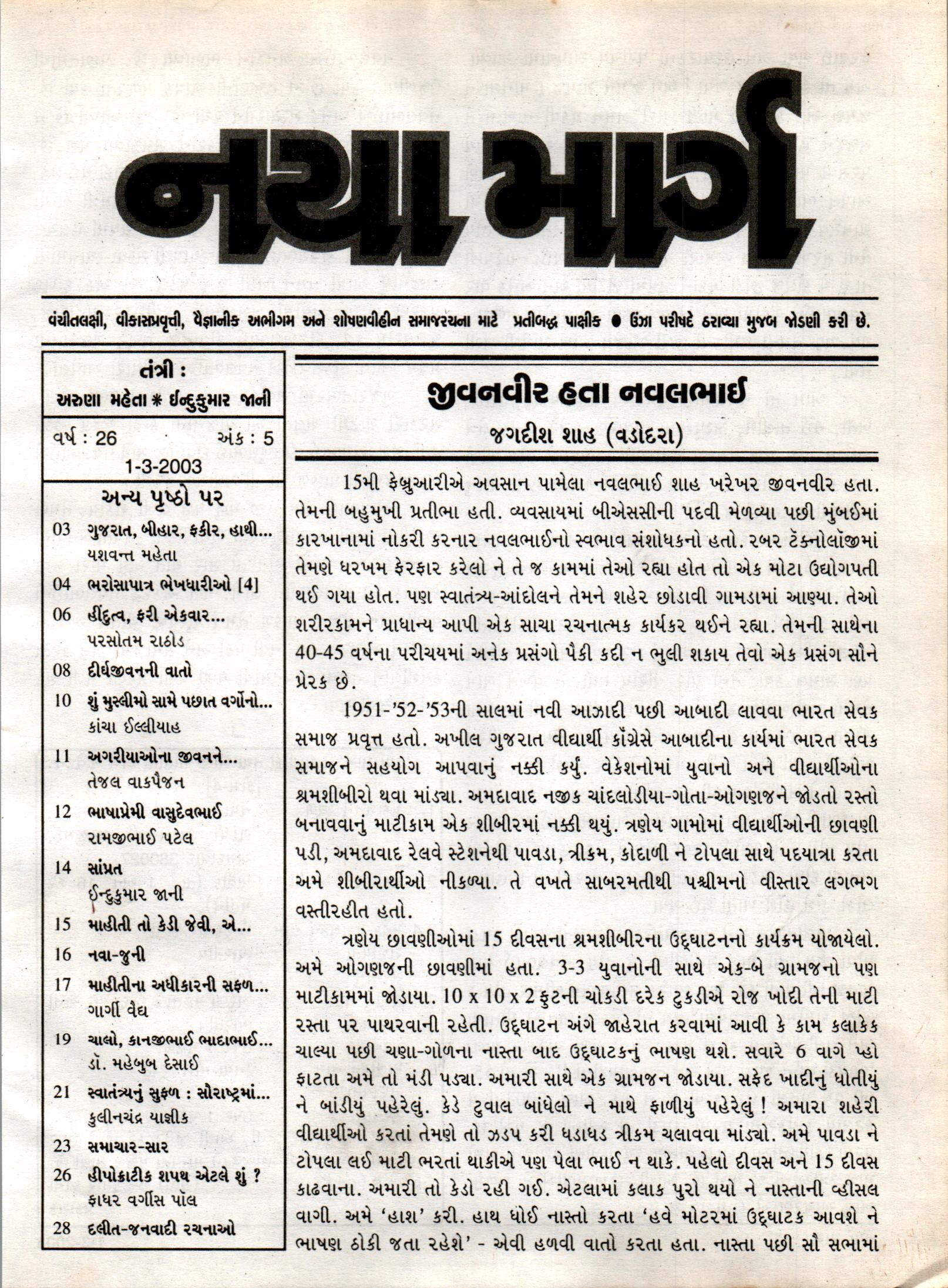 Year 26 1st Mar 2003 Issu 05 Naya Marg by Ekatra Foundation - Issuu