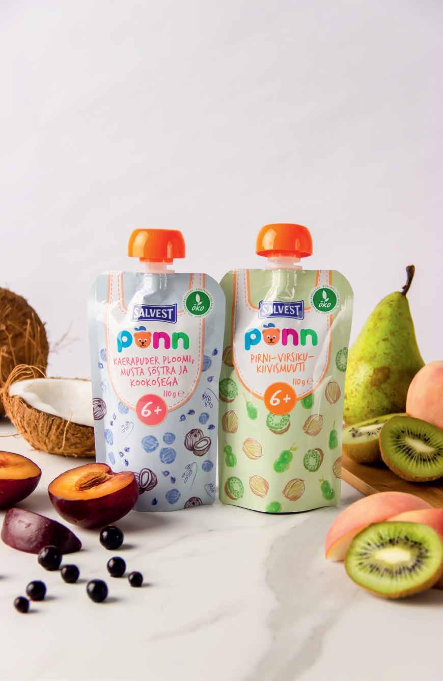 Põnni uus, mahetoorainest valmistatud k reemja tekstuuriga k aerapuder ploomi, musta sõstra ja kookosega on beebile mõnus maitseelamus. Uus puder on toitev kooslus koduse maitsega k aerahelvestest, puuvilja- ja marjapüreedest ning eksootilisest kookosest. Toode on laktoosivaba ning sisaldab traditsioonilise lehmapiima asemel kookost, mis annab võimaluse toodet tarbida k a nendel beebidel, kes on piimavalgu suhtes tundlikud. Pudrus sisalduvad koduse maitsega puuvilja- ning marjapüreed teevad kõhule pai ning puder sobib suurepäraselt põnnidele hommikusöögiks! Põnni teine uus toode, parimast mahetoorainest valminud pirnivirsiku-k iivismuuti, on suurepärane maitsekooslus mahlasest pirnist, lõunamaisest virsikust ja hapuk ast k iivist. Gluteeni- ja laktoosivaba smuuti sobib ideaalselt vahepalaks või kergeks ent toitvaks toidukorraks