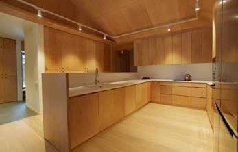 du laudade või istmetena. Toale annab avarust massiivne nurgaaken, mis ulatub maja esiküljelt katusele. Hoonet kandev terasest sõrestikkonstruktsioon on „jalas“ osaliselt eksponeeritud. Kuigi kandev konstruktsioon on terasest, on maja põhimaterjaliks puit. Terasest elemendid on värvitud mustaks, et viia need tagaplaanile ning tõsta puidu erinevad liigid ja kasutusviisid esiplaanile.