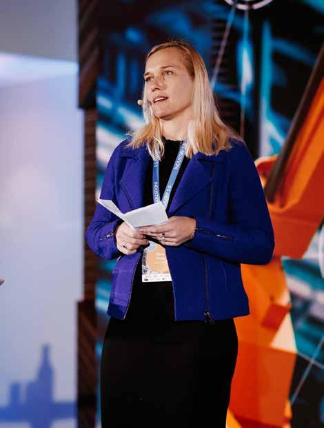 Majandus- ja kommunikatsiooniministeeriumi tööstusvaldkonna juht Kaspar Peek, AIRE juht Kirke Maar ning konverentsi päevajuht ja Roofit.Solari kaasasutaja Helen