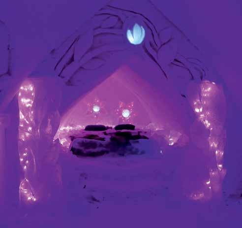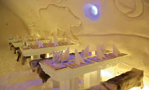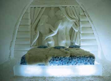 пабом. Были также люксы «Великий Гэтсби» и «Сон в летнюю ночь». В последнем в лед были заключены красивые шведские летние цветы. Всего на строительство здания уходит шесть недель, внутри отеля поддерживается температура в минус пять градусов. Однако мороза бояться не стоит: поддерживать тепло помогут специальные, очень теплые спальные мешки и оленьи шкуры. Всего в отеле около 100 номеров, а также ресторан, бар и зона отдыха. В изысканном ледяном баре шампанское подается соответствующим образом – в ледяных бокалах ручной работы. А в ресторане должно очень