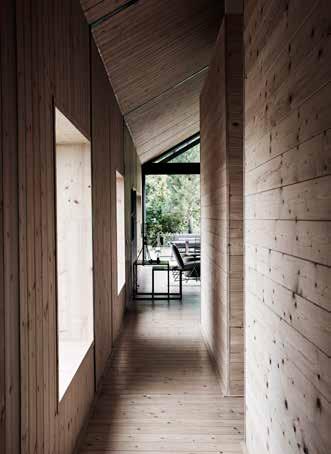 kaalukalt,“ ütles ta. Aknad raamivad vaateid ja tekitavad hoonesse pisut ebakorrapärase valguse. Need asuvad sügavates puusüvendites, mis on piisavalt suured, et inimene nende sisse mahuks, luues elutuppa väikese omaette orva, kus viibides tekib tunne, et oled „ühtaegu nii sees kui ka väljas“.