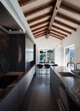 Ruumi on püütud efektiivselt ära kasutada ja erilist tähelepanu on pööratud panipaigale ning reserveeritud on eraldi ruum hobivarustusele. Mustvalget kujundust ei tasu karta – mängida saab mustrite ja struktuuridega, et luua põnevaid nüansse. Lisaks on kasutatud nende kahe värvi vahepealset tonaalsust ehk halli. Köögis on kapiuksed musta puiduspooniga, köögisaar jällegi valge, et tasakaalustada musta. Kivipinnad, nagu TV- ja vooditagune sein ning keraamiline plaat, on marmori mustriga.