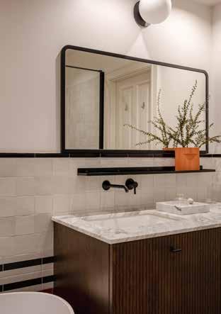 Omanikele oli oluline, et korteris oleks eraldi vann ja dušš. Vannitoaplaadid on austusavaldus konstruktivismile. „Ma segasin nelja erineva kaubamärgi plaatide kollektsioone, et luua konstruktivismile omast esteetikat, kuju ja värvi,“ ütleb disainer. „Aktsentideks on valitud harmoneeruvad elemendid, alustades terrakotatooni keraamilistest seinaküünaldest, lõpetades Ukraina disaineri Julia Kononenko loodud taiestega.“