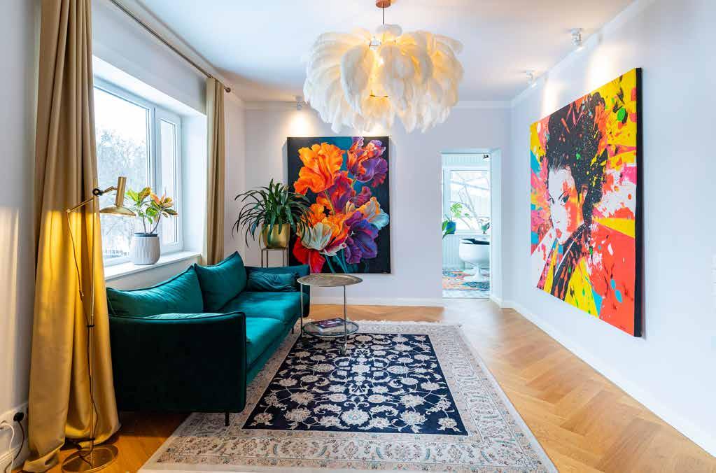 Värvikate kunstiteoste ja eklektilise sisekujundusega kodu