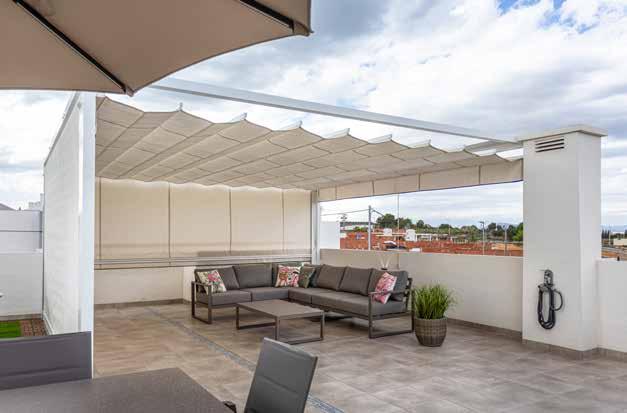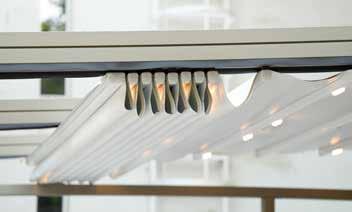 vertikaalseid markiisilahendusi või terrassi külgseinu. Need toimivad nagu ruloosüsteem – kangas liigub ülevalt alla või küljele ning aitab lisaks päikesele vähendada ka tuult ja luua rohkem privaatsust.