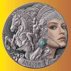 Naissôdalased. Amazon. Kameruuni 2024.a antiikviimistlusega värvitrükis hõbemünt amasoniidiga
