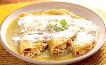 n En un plato, vierte la salsa verde y coloca las enchiladas.