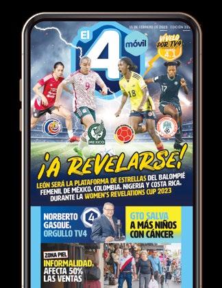 Premiarán creatividad e innovación CRE@TEI ELEGIRÁ LAS MEJORES PRODUCCIONES CIENTÍFICAS Y CULTURALES PÁG. 7 MIELERAS DE GUANAJUATO LLEGAN RENOVADAS A LA TEMPORADA 2023 DE LA LIGA DE BALONCESTO, EN LA QUE BUSCARÁN EL BICAMPEONATO PÁG. 23 TV4NOTICIAS.COM 20 DE FEBRERO DE 2023 ¡APÓYALAS! LA ACTIVIDAD COMENZARÁ A PARTIR DEL 25 DE FEBRERO Échale un ojo a TV4 CONSULTA NUESTRA PROGRAMACIÓN PÁG. 16