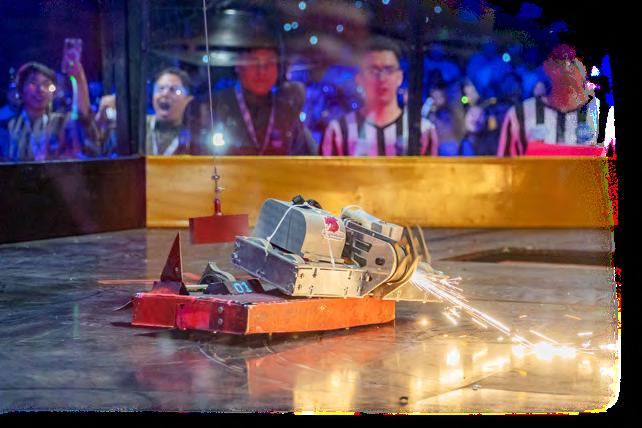 Más allá del ring, los equipos jóvenes con herramientas en mano hacían ajustes de sus robots. Caronte, Arpía, Chappie son algunas de las ‘bestias’ metálicas que participaron en el torneo.
