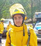 VALOR. Salvador ayuda a sofocar el incendio en la Sierra de Santa Rosa.