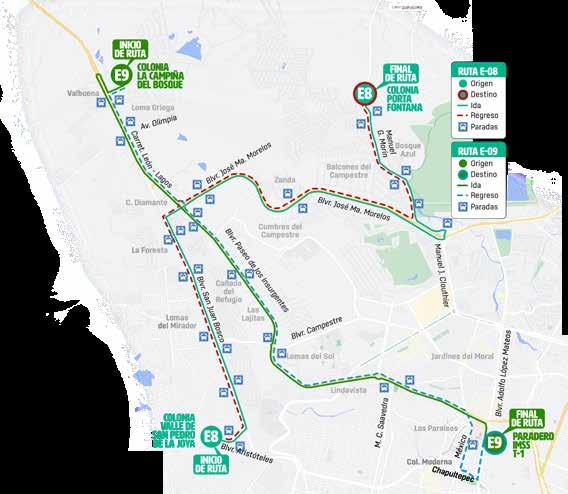l RUTA EXPRÉS E-09: Inicia recorrido en La Campiña del Bosque y termina en paradero IMSS T1