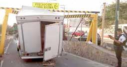 drán que pagar hasta 50 mil pesos más gastos. Así lo informó el alcalde interino de León, Jorge Jiménez Lona, quien sostuvo que esta semana concluirá la instalación de señalamientos, que consiste en gráficos donde se ve una camioneta tipo Pick Up con camper, mismas que son las que se han estado atorando en los desniveles. Desde abril se restringió la circulación de vehículos de carga o de grandes dimensiones en el Malecón por la parte baja; además, se instalaron reductores de velocidad como medida preventiva y personal de vigilancia para evitar accidentes.