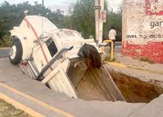 Durante las primeras horas del jueves, un socavón se generó en la calle Trigo, casi esquina con Malecón del Río, ocasionando que una tolva quedará prácticamente hundida en el mismo. Afortunadamente, no se reportaron lesionados, solamente daños materiales.