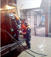 Limpian. Con bombas charqueras sacaron el agua de las viviendas.