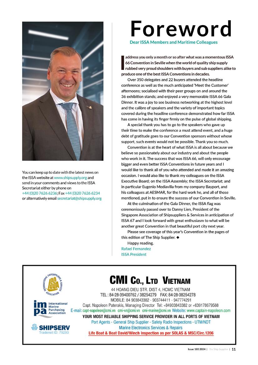 The Gala Dinner, scheduled for the evening of Thursday 5 November, remains a highlight of the Convention calendar, providing an exceptional setting for senior-level networking and relationship building. Please keep an eye out for messages from the ISSA Secretariat on how to book your tickets. A special ISSA68 website, full up with all the information you will need, can be found on the ISSA website. Happy reading.