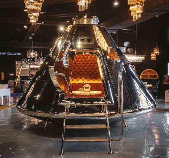 There are spaces that feel less like rooms and more like escapes from time itself. Apollo is a private lounge that draws you into that world, conceived by Timothy Oulton Studio and built to the scale of NASA’s Apollo 11 space capsule, with its polished steel exterior creating a striking presence that piques interest before you even set foot inside. Once inside, each pod adapts to its owner’s needs, from a private seating area to a workspace or dining pod, with interiors tailored in materials such as leather, sheepskin, velvet and linen. Refusing to sacrifice impact for size, even the smallest of details have been thoughtfully considered. This statement piece is designed to elevate any occasion, creating a setting of both intimacy and allure, and can be made for indoor or outdoor use.