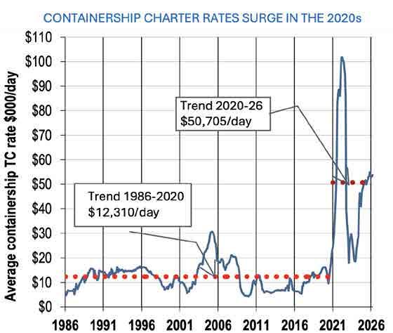 Iran’s chokehold on the Strait of Hormuz during the Middle East conflict once again demonstrated shipping’s ability to inflict turmoil on the world economy due to supply chain disruption. Other recent examples included the pandemic, obstruction of the Suez Canal by the Ever Given grounding, drought restrictions on Panama Canal transits, and Houthi attacks on merchant vessels in the Red Sea area.