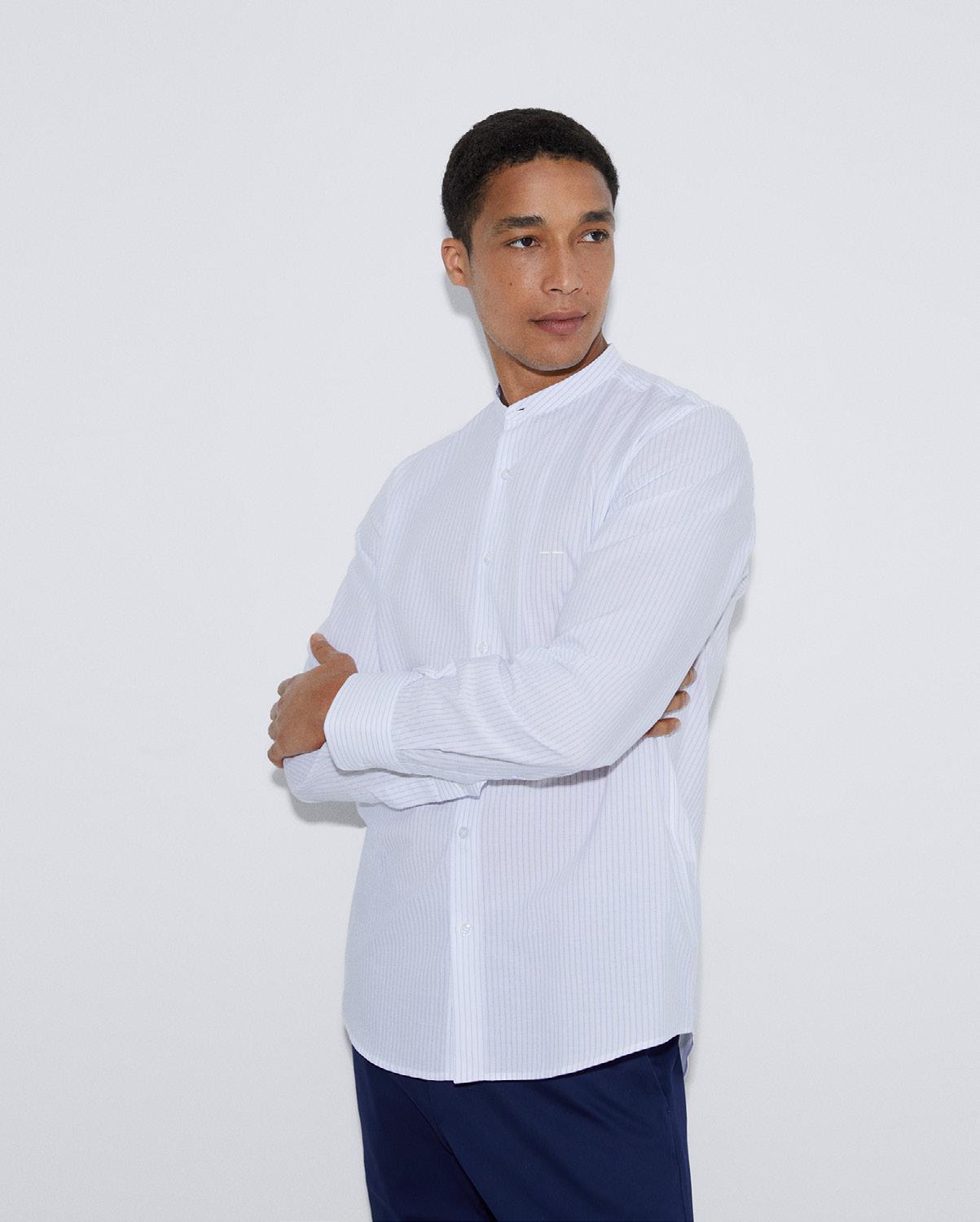 CAMISA RAYAS CUELLO MAO EN ALGODÓN - 1200511401 - $ 129