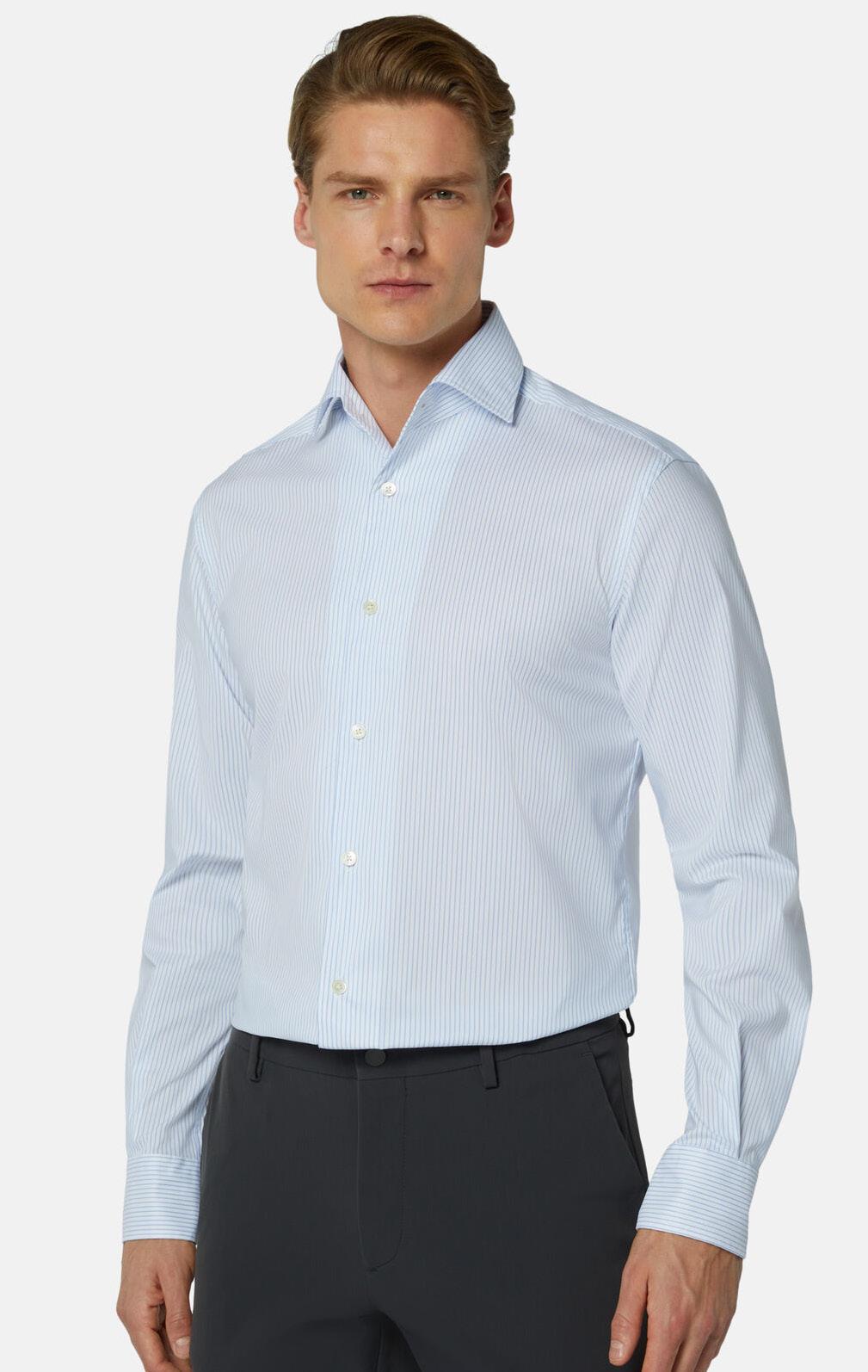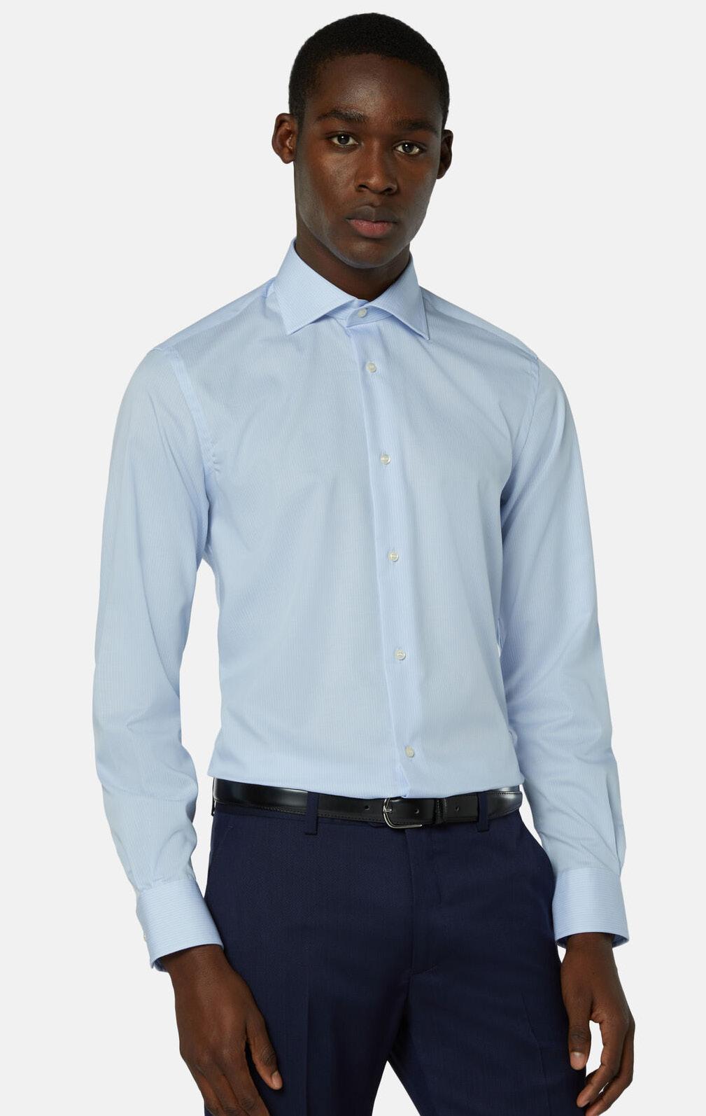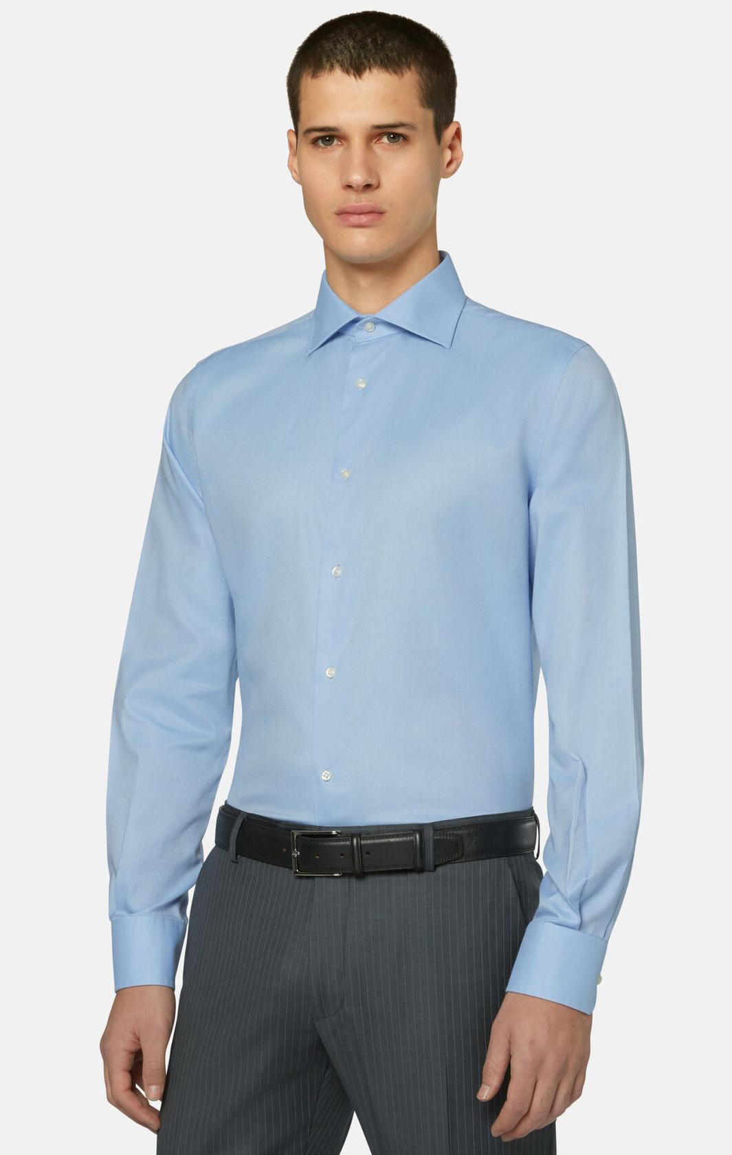 Camisa con cuello Windsor, ultimate non-iron. El tejido es un pin point de algodón de doble torsión. La particular confección y el acabado al que se somete la prenda garantizan resistencia a las arrugas y un cuidado extremadamente fácil.