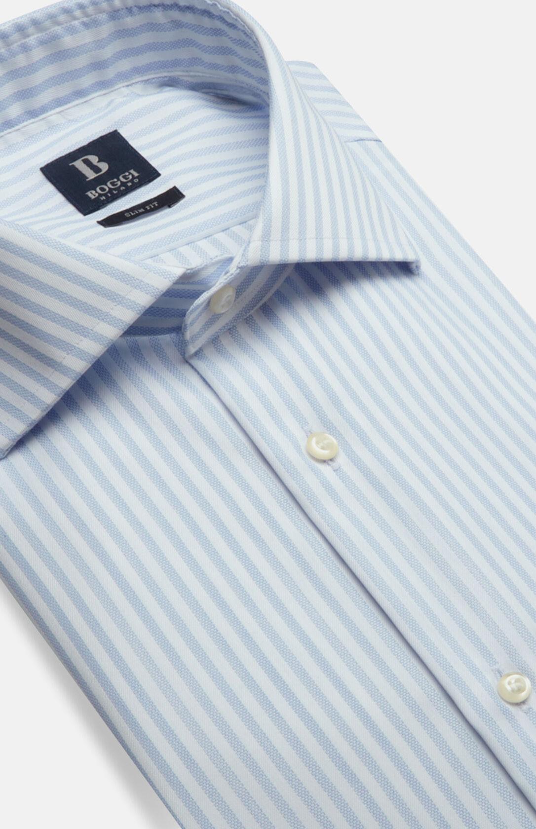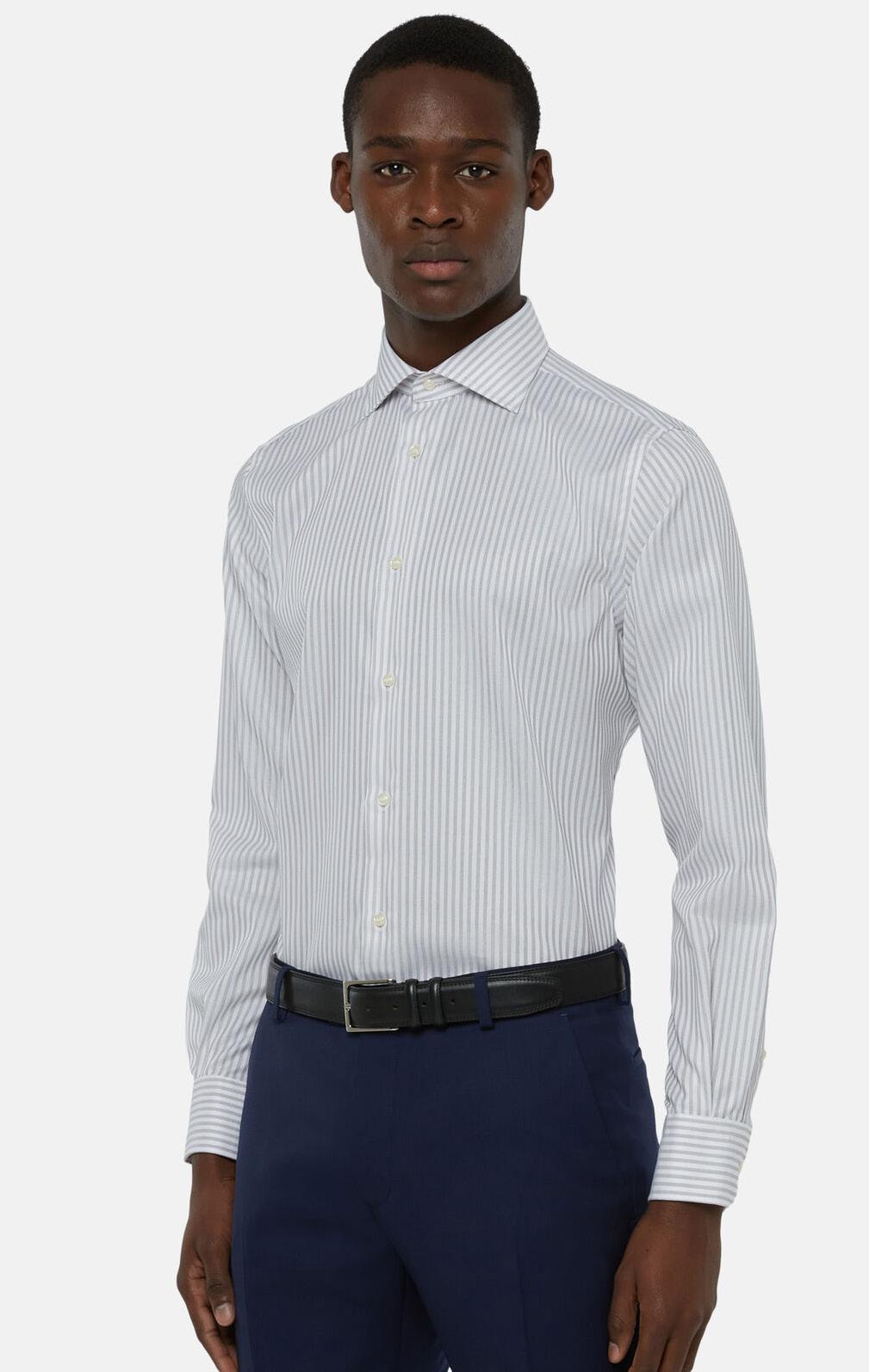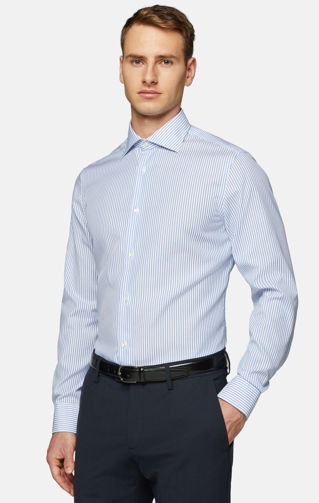 Camisa con cuello Windsor, ultimate non-iron. El tejido es un pin point de algodón de doble torsión. La particular confección y el acabado al que se somete la prenda garantizan resistencia a las arrugas y un cuidado extremadamente fácil.