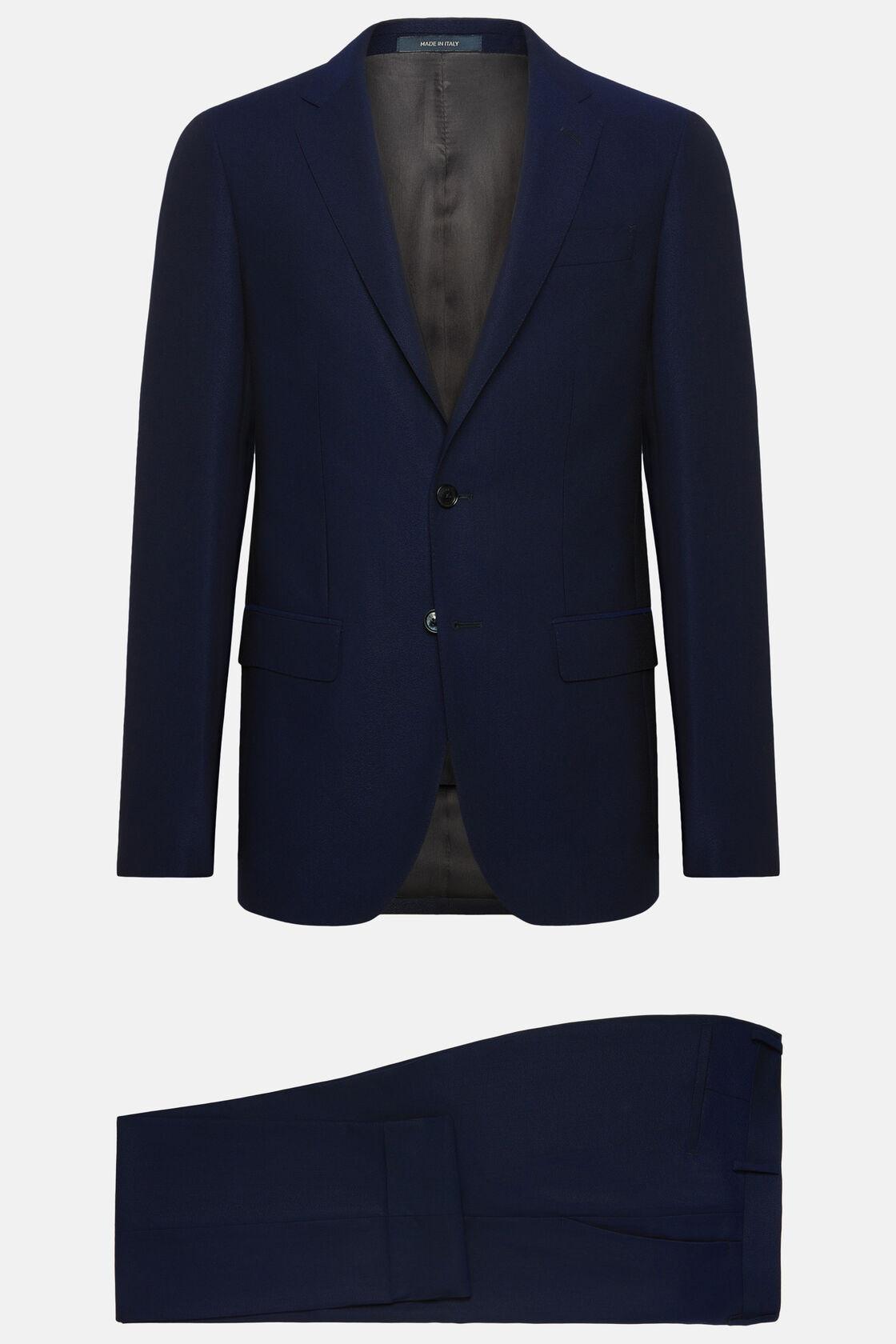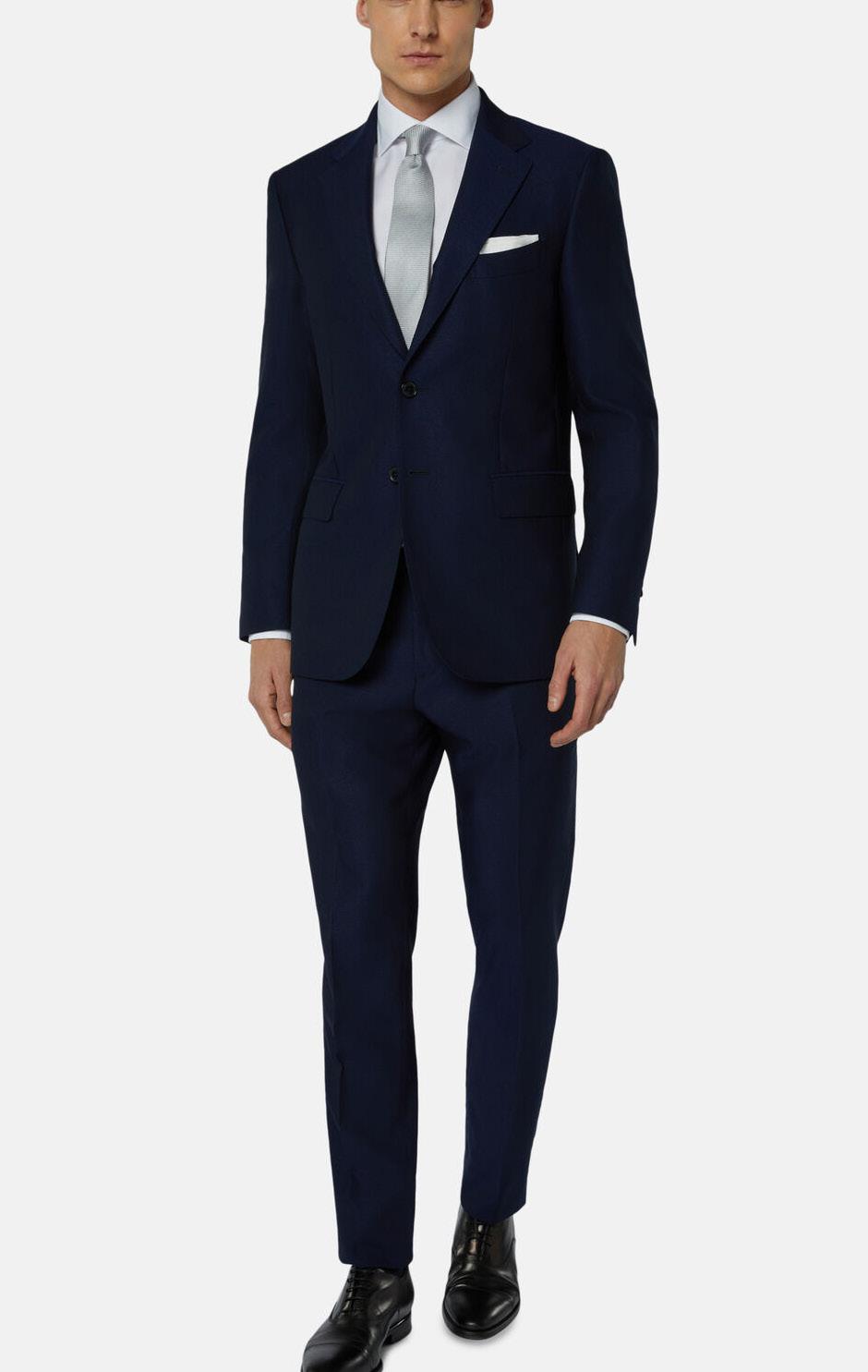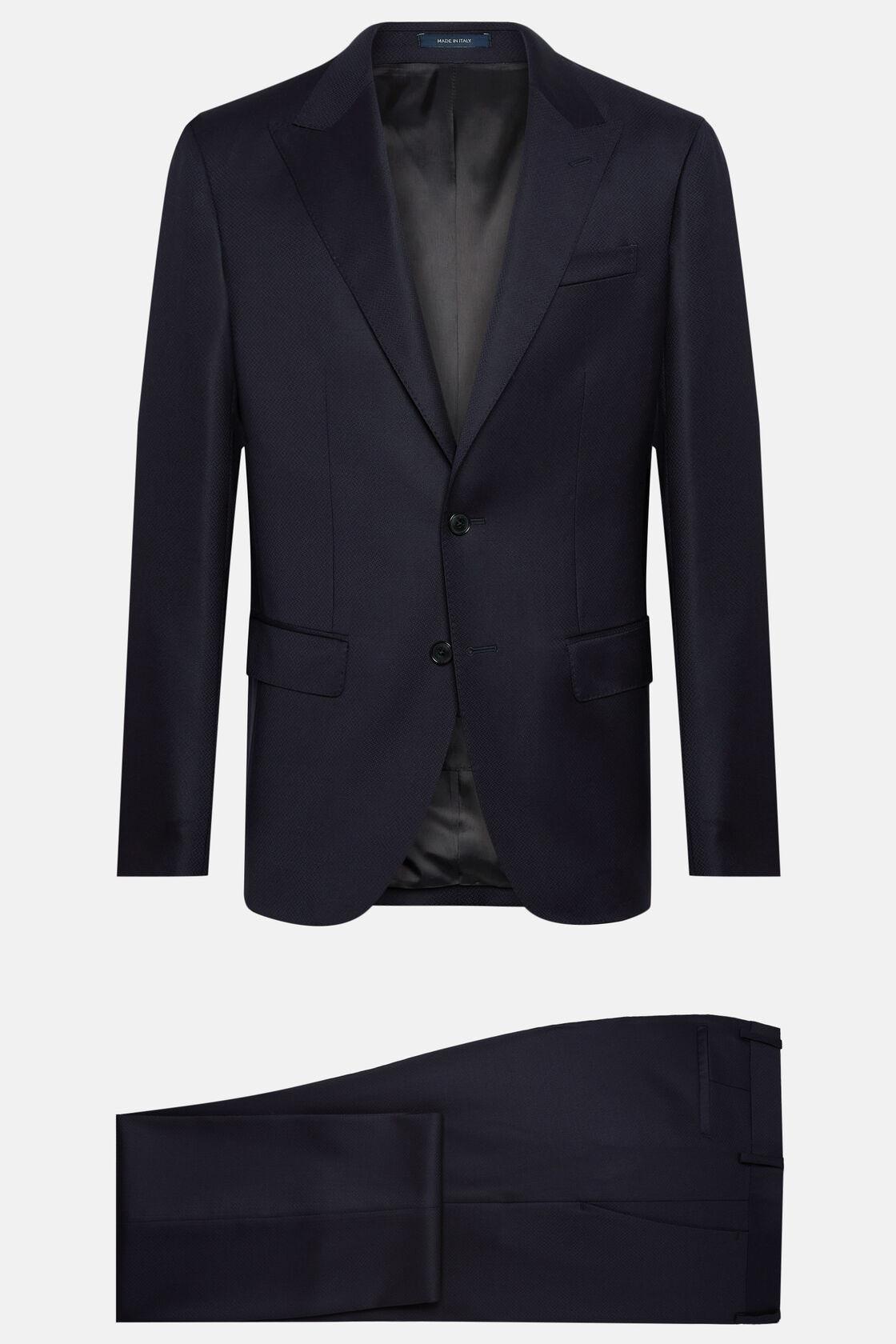 Traje con motivo estructurado. Confeccionado en pura lana. Detalles interiores lujosos. Made in Italia.