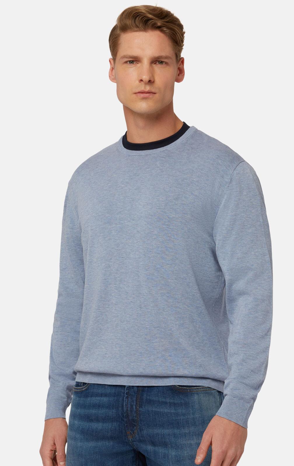 Chompa de cuello redondo con detalle de color en contraste en el interior del cuello. Confeccionado en algodón Pima de calidad.