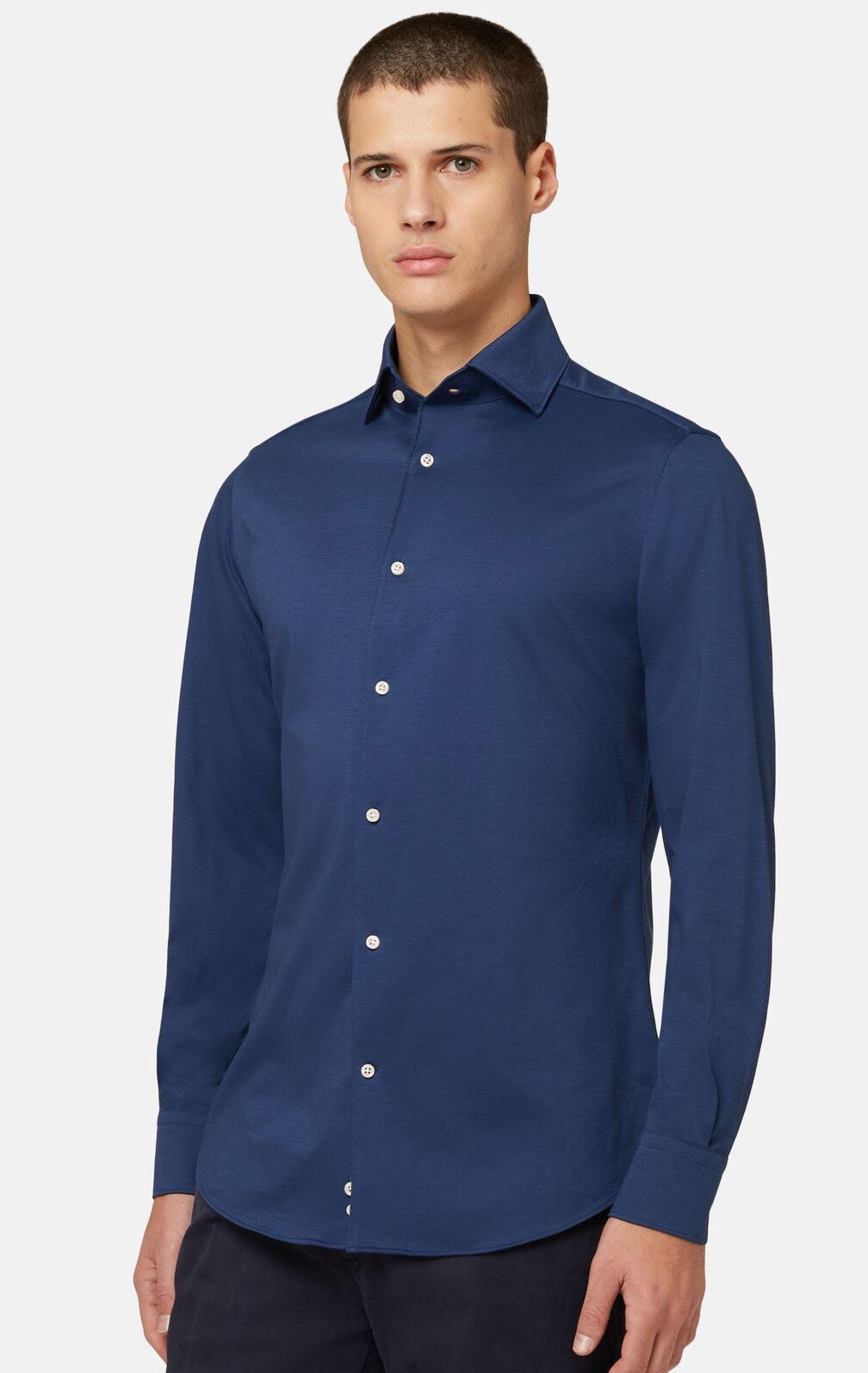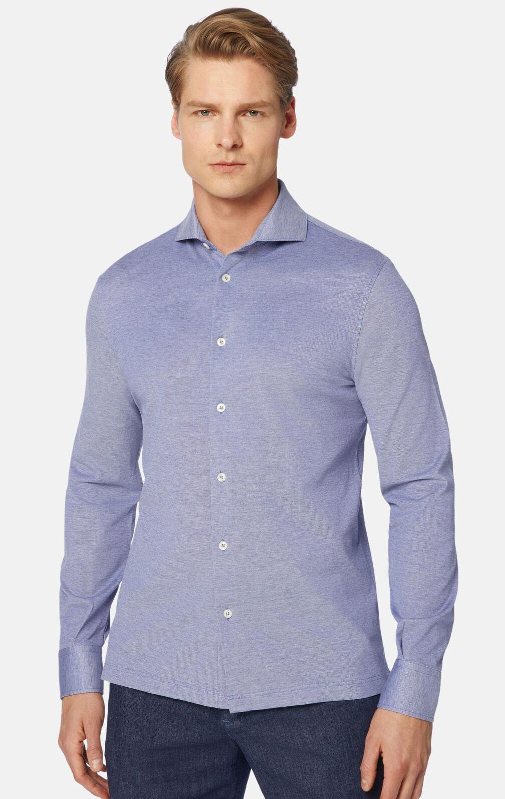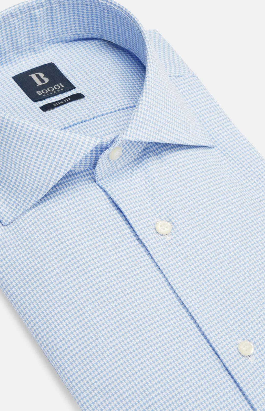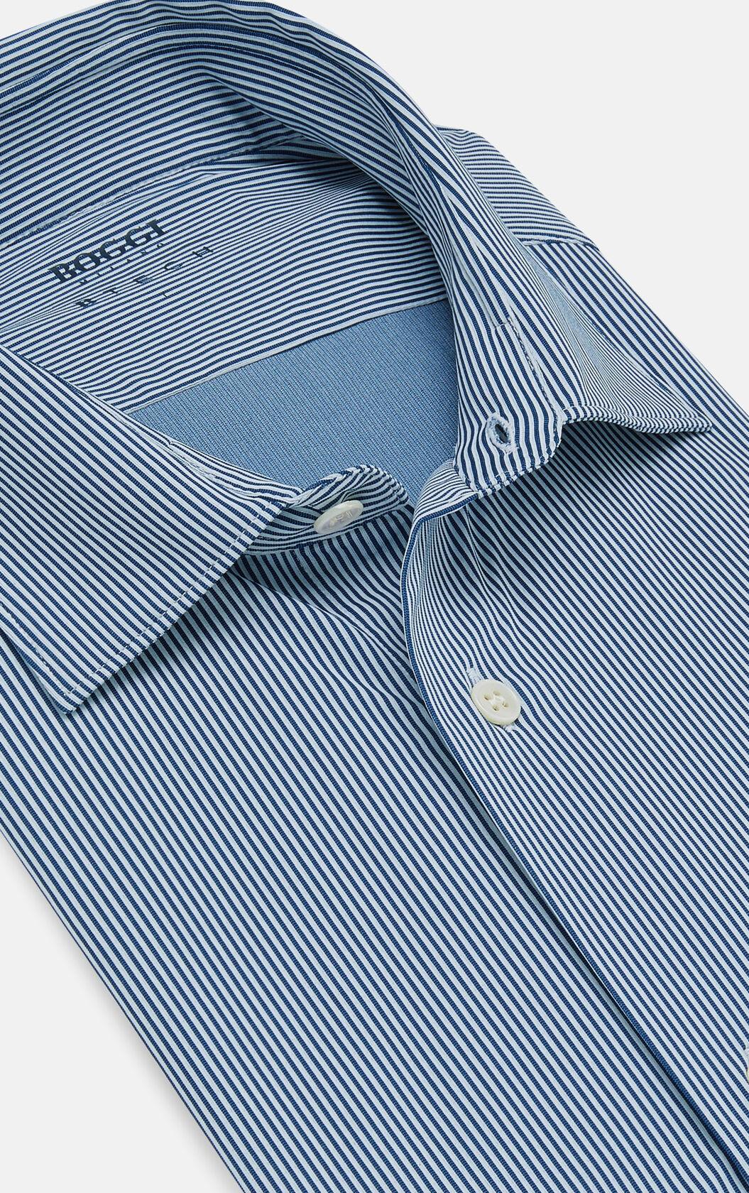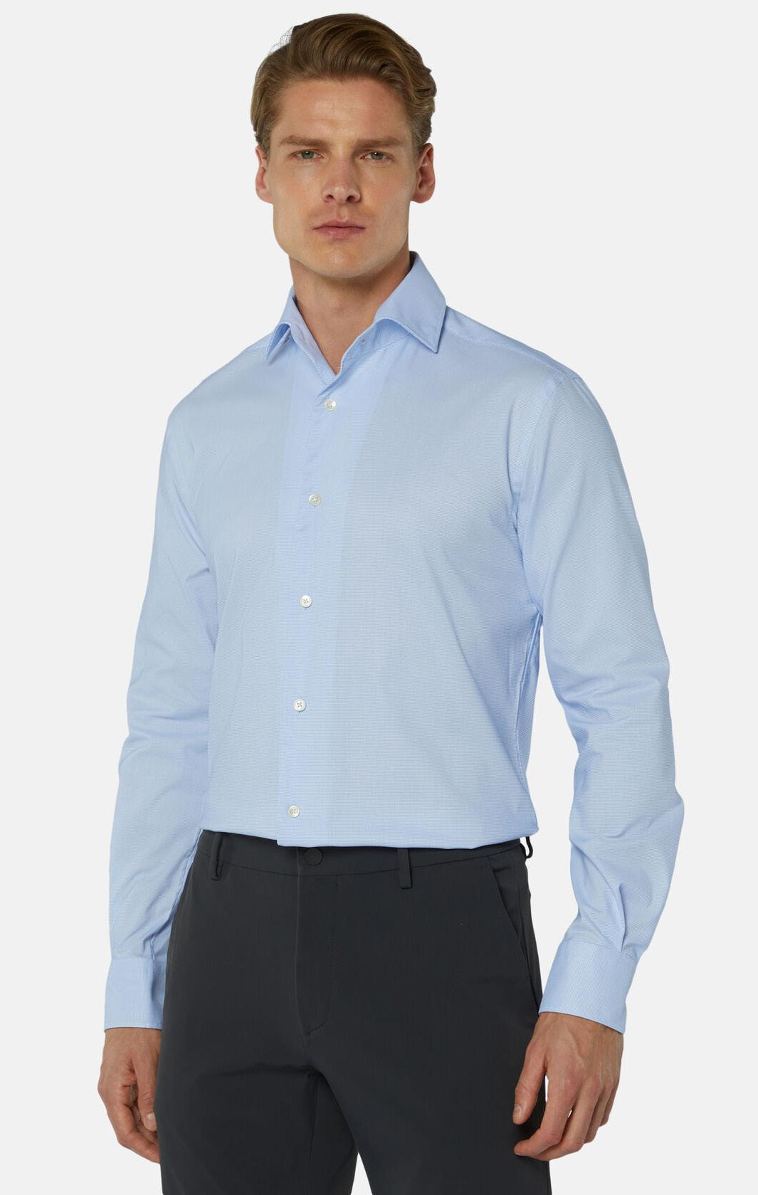 Camisa con cuello Nápoles. Confeccionada en algodón dobby stretch, Made in Italia. Su componente de licra garantiza un alto rendimiento y una total comodidad.