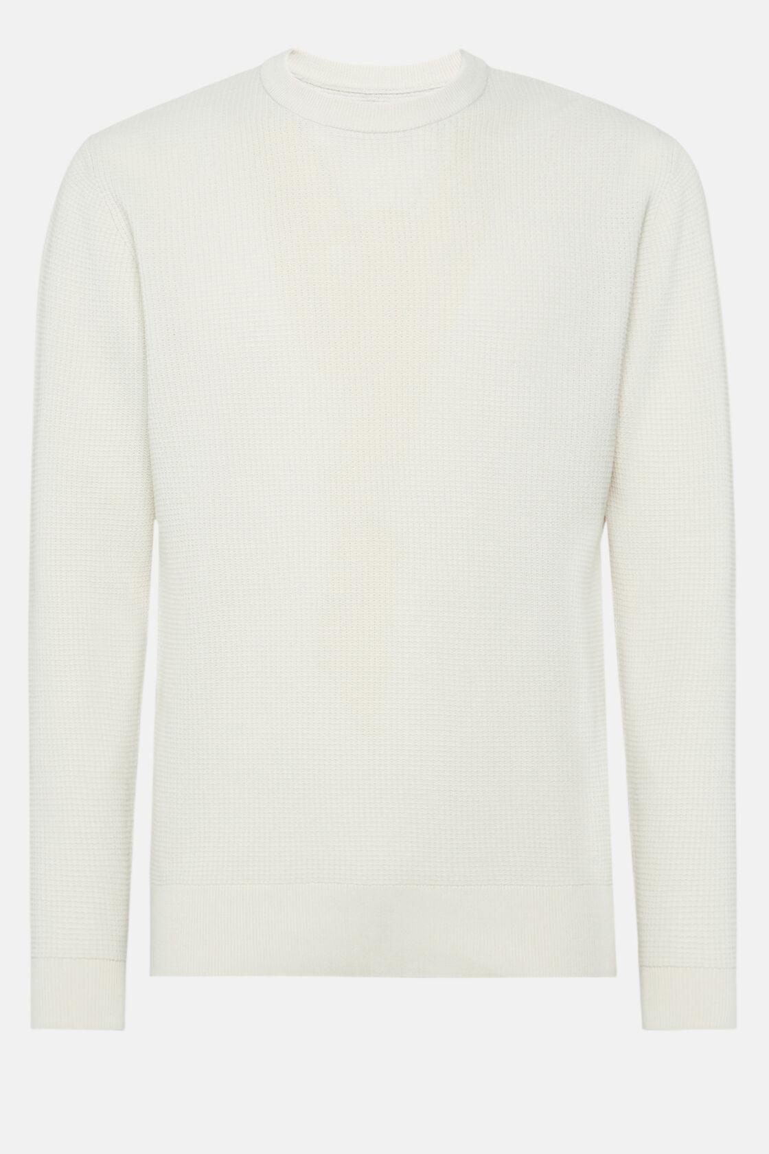 Chompa con cuello redondo de punto waffle. Confeccionado en mezcla de algodón y nailon.
