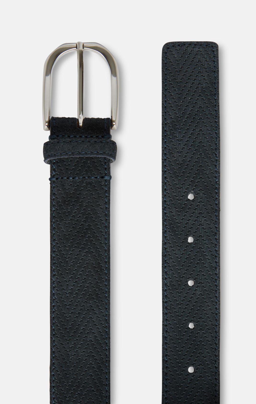 Correa de piel de Ante con estampado de texturas. La hebilla con el logo es de color níquel satinado. Ancho de la correa: 35 mm.