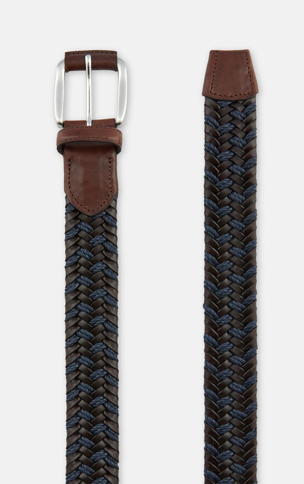 Correa trenzada stretch. Confeccionada en piel regenerada y algodón encerado. La hebilla con el logo es de color níquel satinado.
