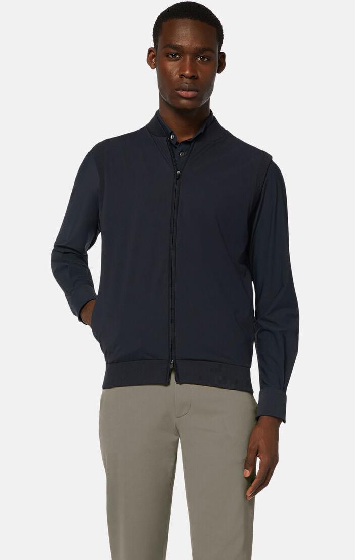 Saco modelo Bicycle con pechera desmontable de tejido elástico reciclado de la línea B-Tech, caracterizada por sus tejidos de última generación. Elasticidad, comodidad, transpirabilidad, resistencia a las arrugas y secado rápido aportan un rendimiento extraordinario a esta prenda.