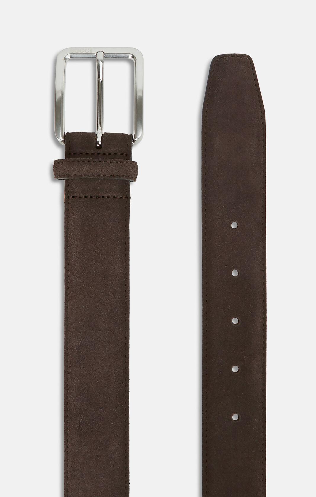 Correa de piel de Ante con una hebilla satinada con logotipo. Ancho de la correa: 35 mm.