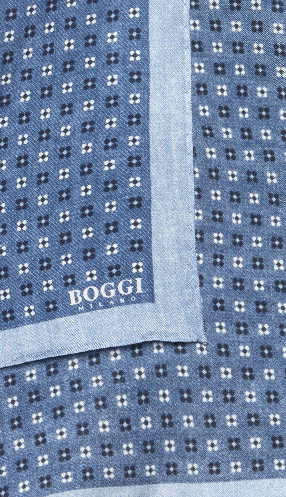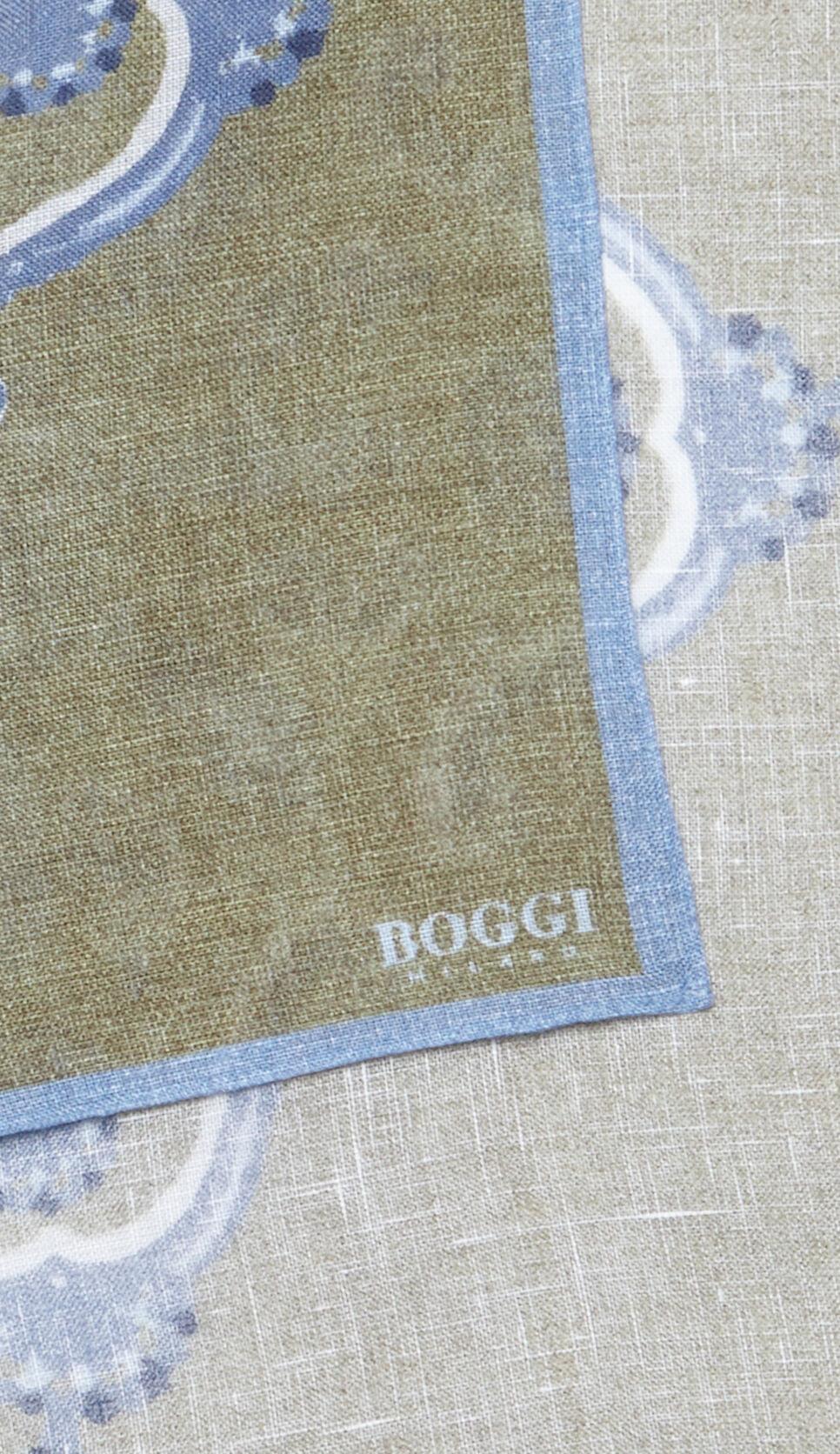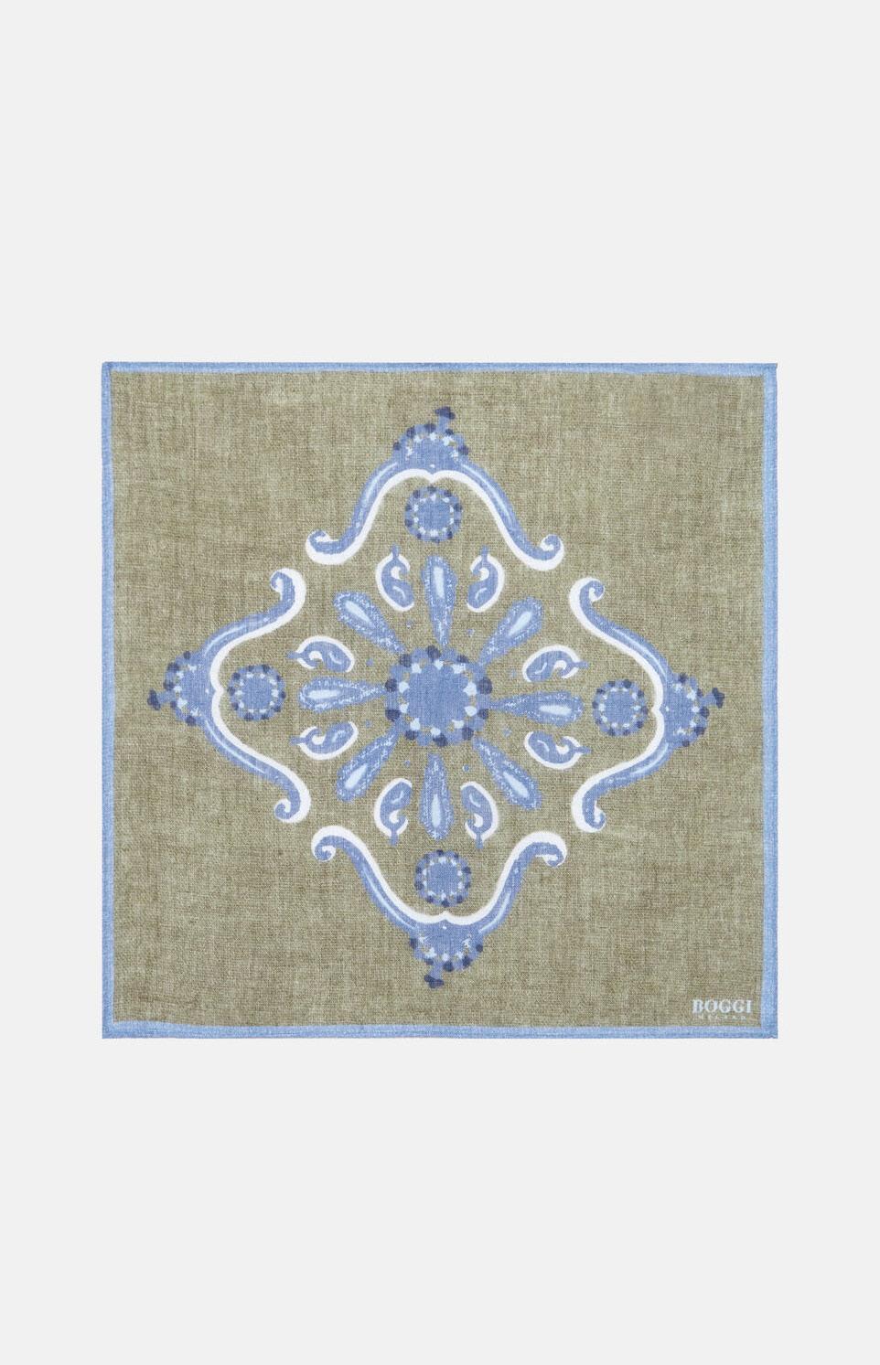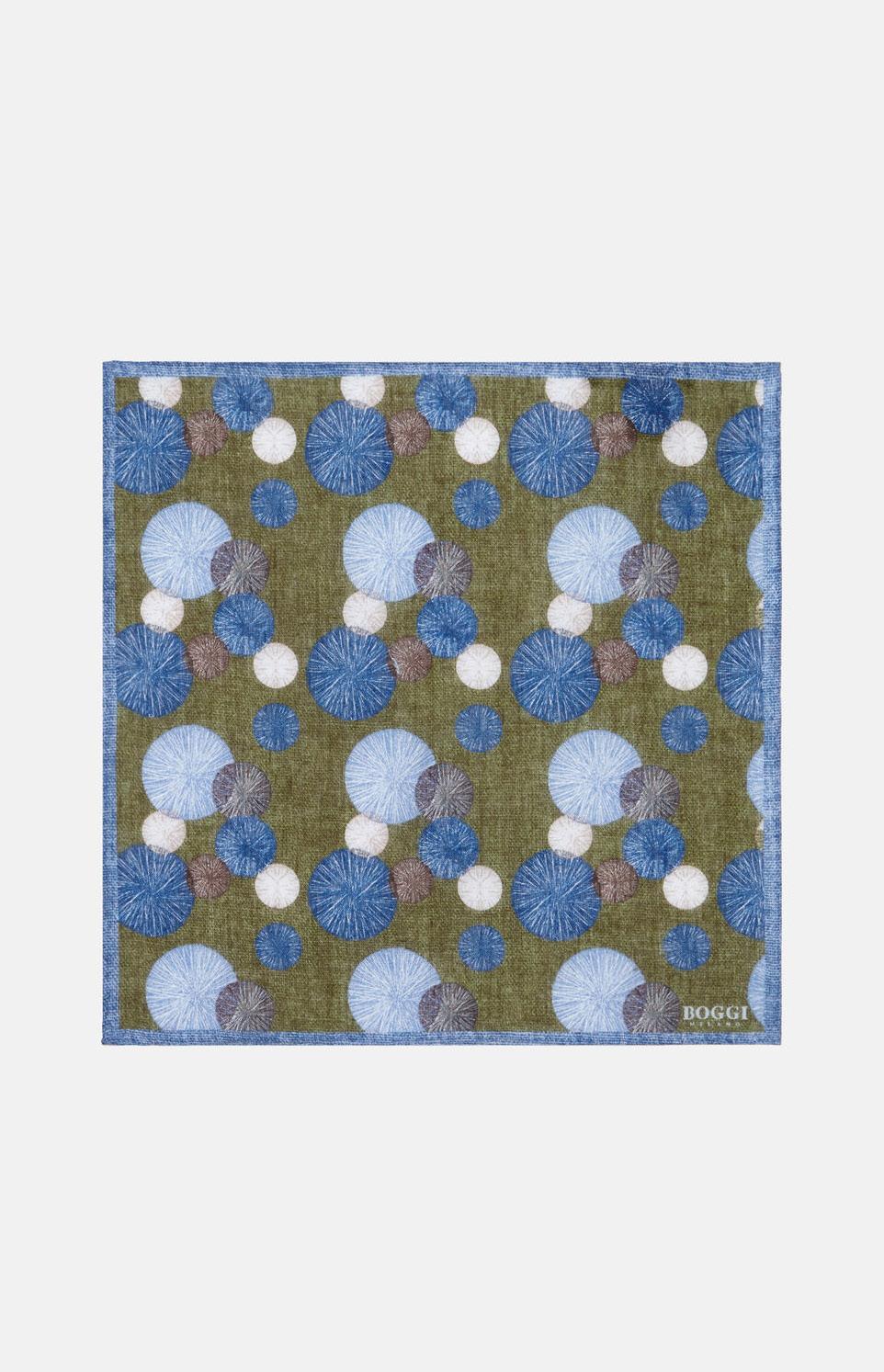 Pañuelo de bolsillo de lino con macro fantasía. Medidas: 33 x 33 cm.