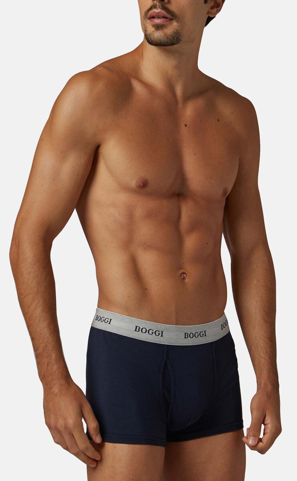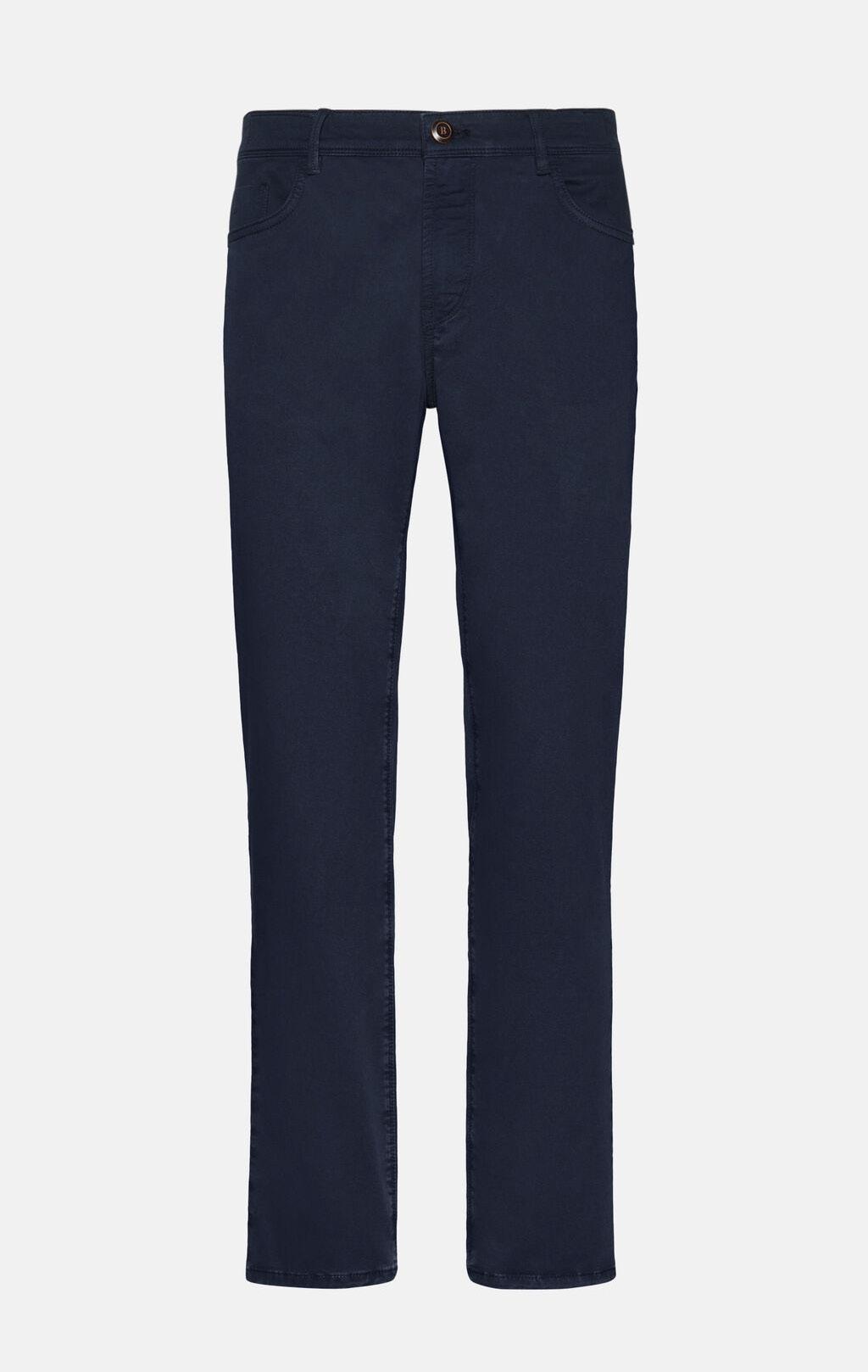 Bermuda de algodón elástico teñido en prenda. Cierre con botones y cremallera, bolsillos diagonales delanteros y bolsillos traseros. Etiqueta B de Boggi insertada bajo el ribete del bolsillo posterior derecho.