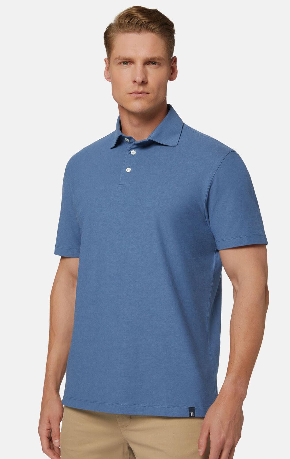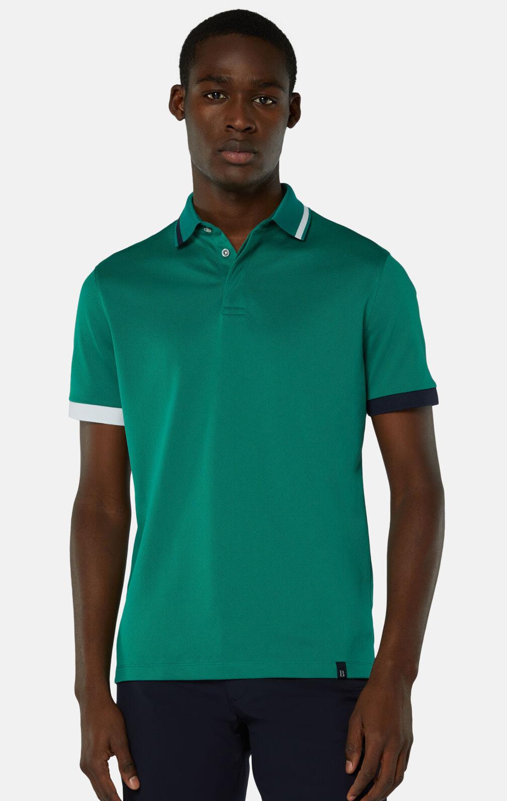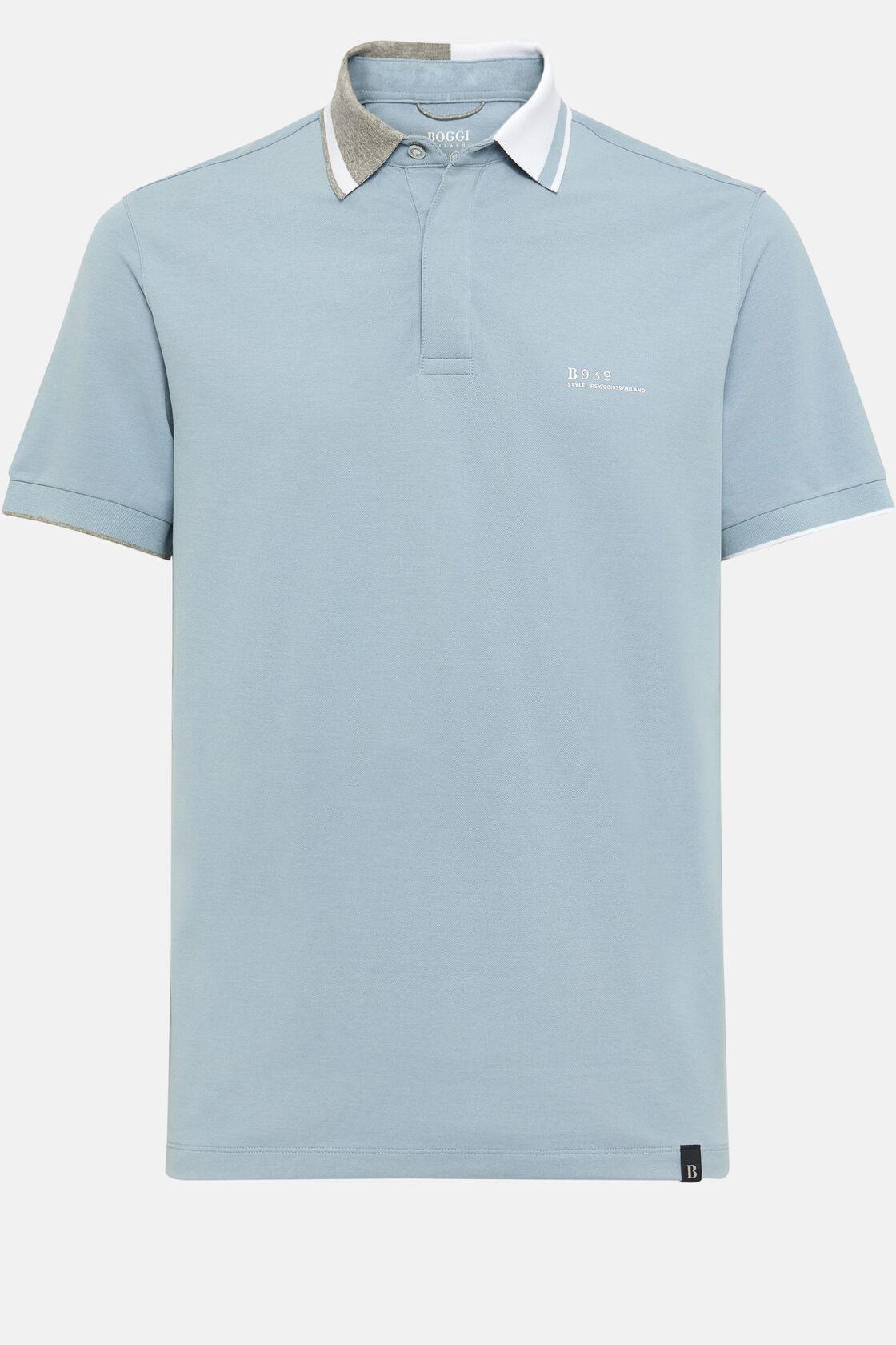 Polo de piqué de algodón y lino flameado. El modelo presenta: cierre con botones de nácar, detalles en contraste en el interior del cuello y en la tapeta, y la B de Boggi aplicada en la parte inferior izquierda de la prenda.