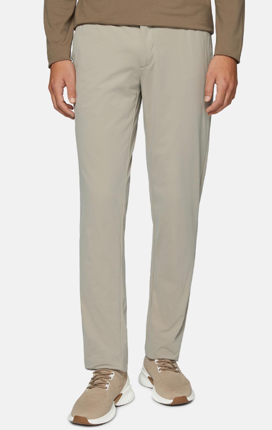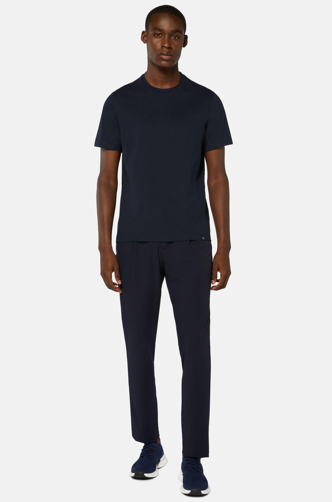 Pantalón de la línea B-Tech, caracterizada por sus tejidos de vanguardia. El punto jersey light, que combina algodón y poliéster elástico reciclado, garantiza un alto rendimiento en términos de elasticidad y comodidad.