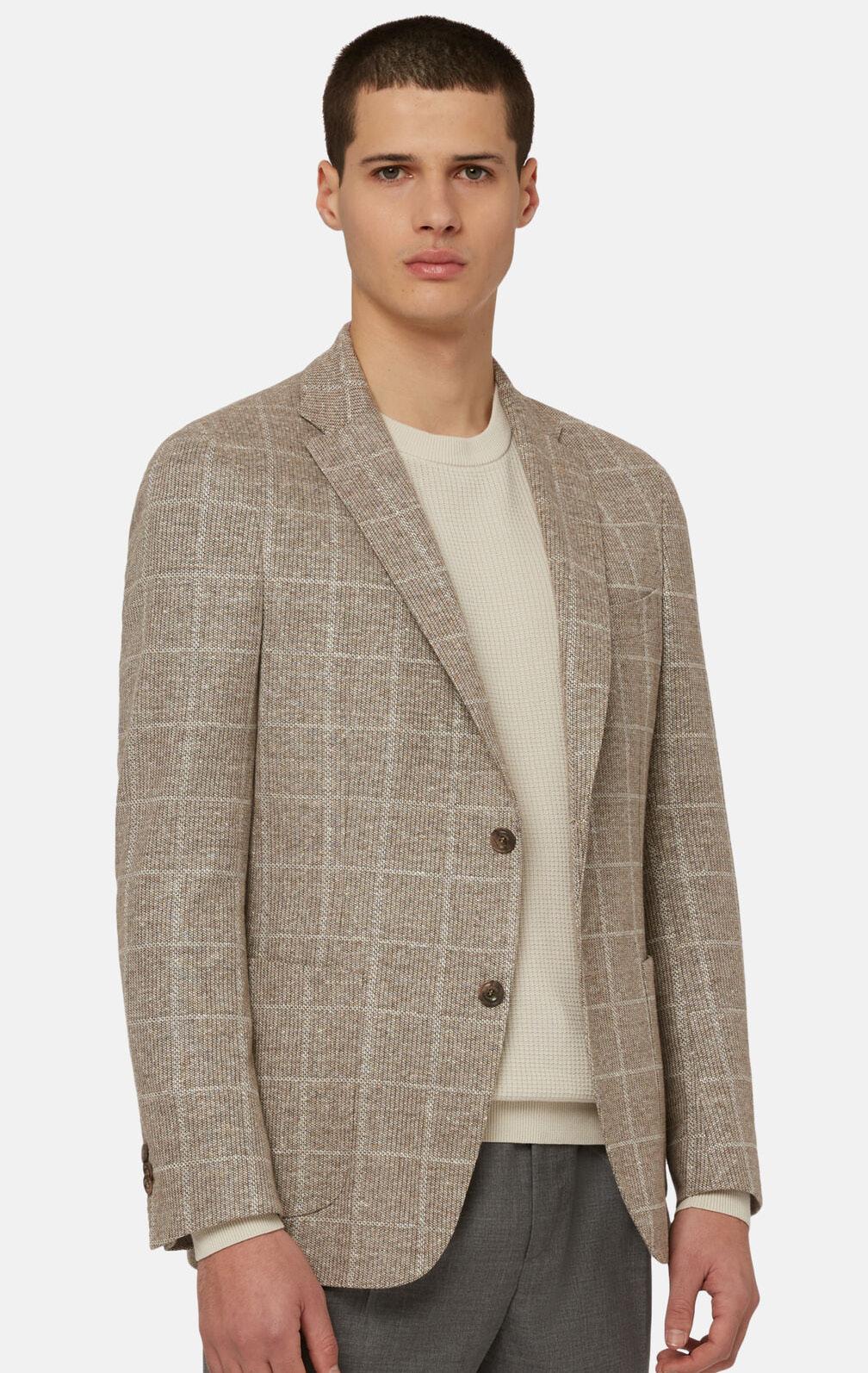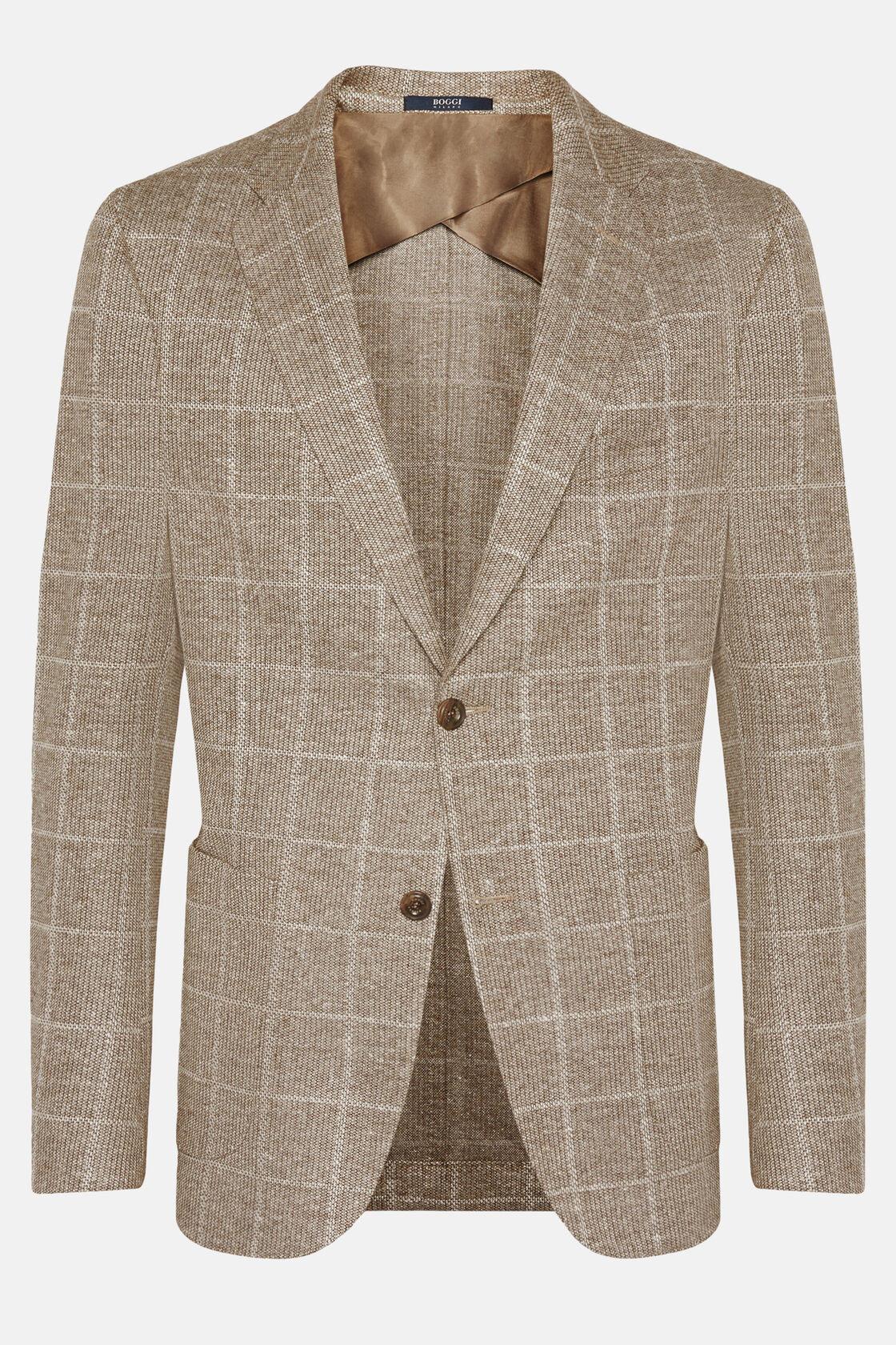 Saco de cuadros de la línea B-JERSEY. Confeccionada en lino y algodón.