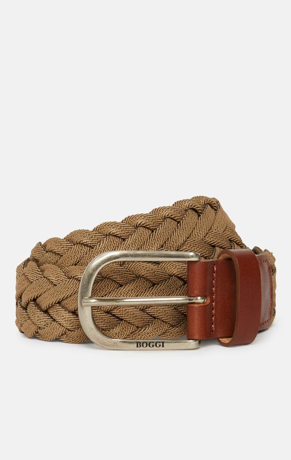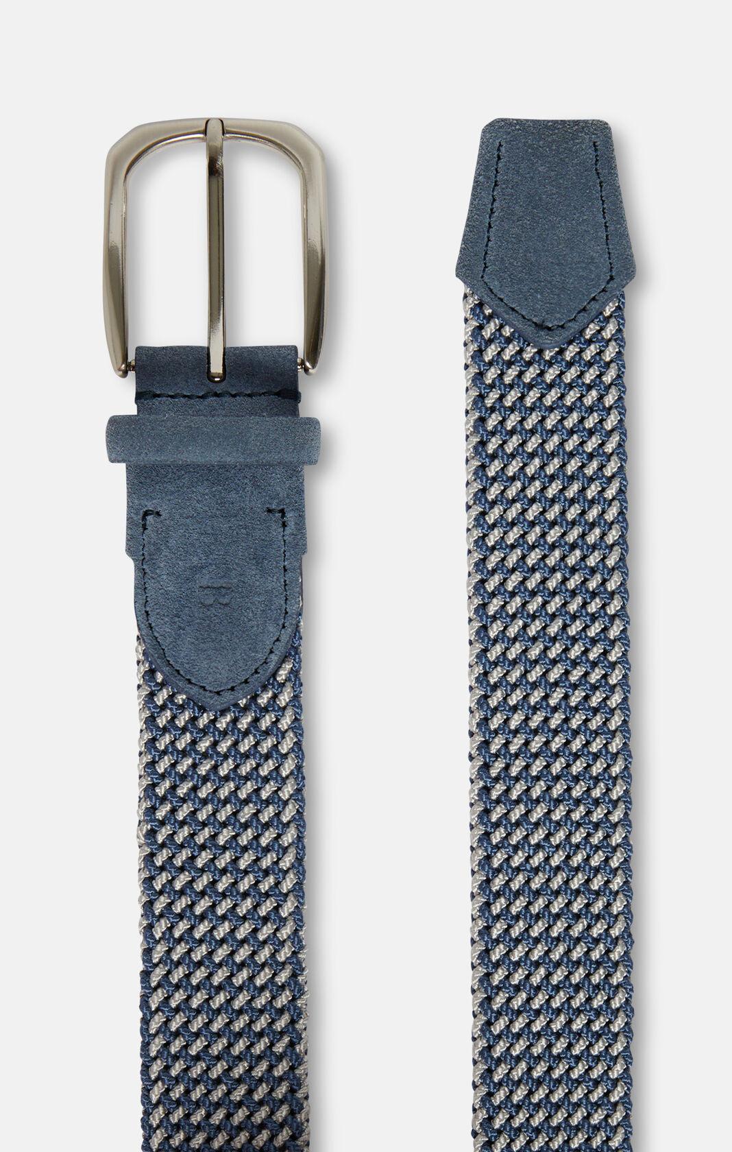 Correa trenzada stretch. Confeccionada en mezcla de algodón con detalles de ante estampado. La hebilla con el logo es de color níquel satinado.